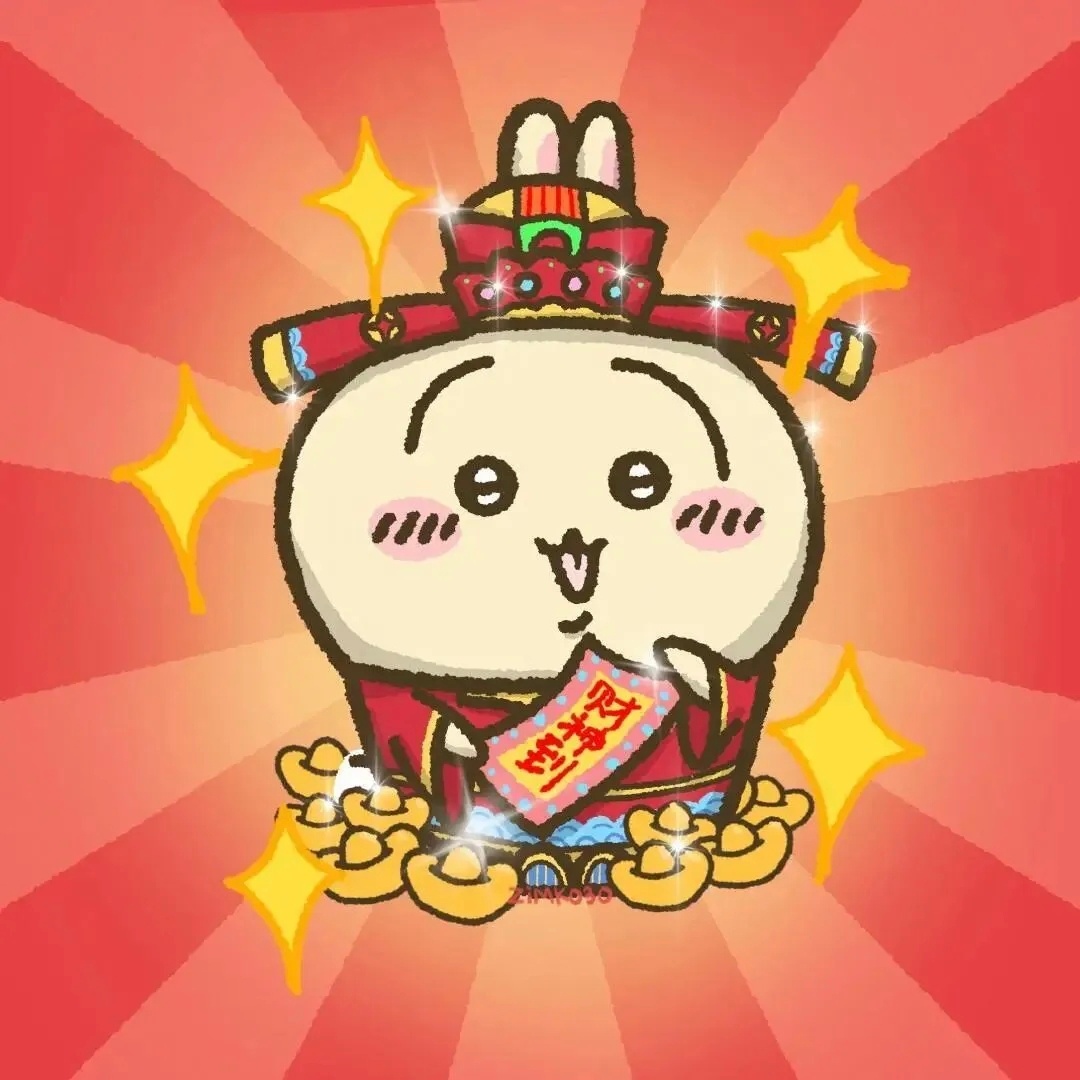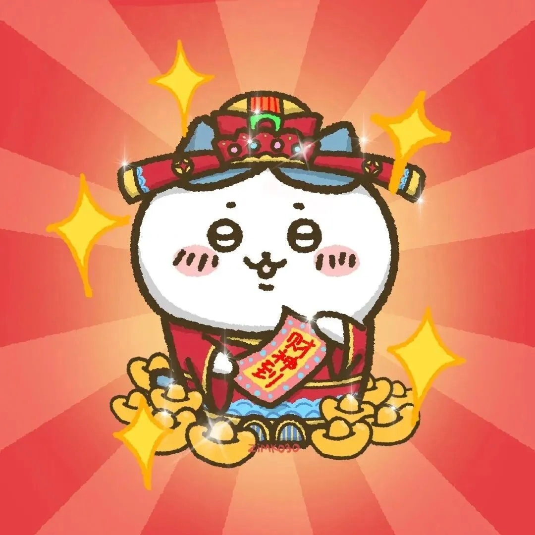 迎财神新年迎喜番chiikawa大年初五接财神,财神祝你发财、被爱,新的一年行大运动漫