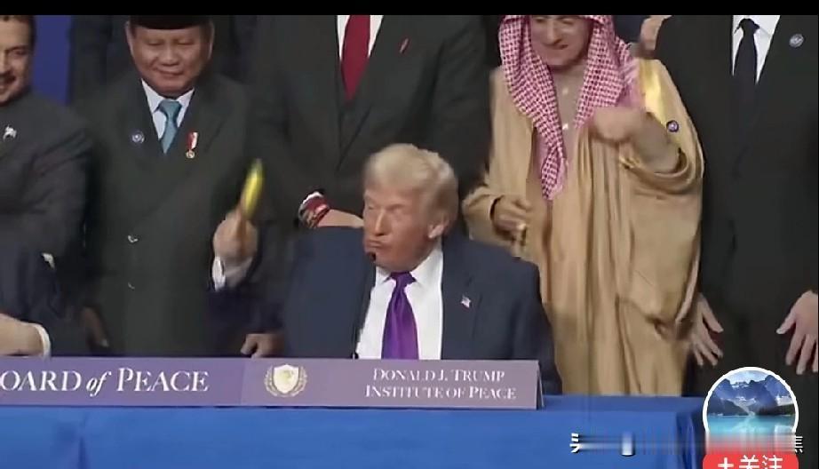 特朗普太喜欢黄金了拿走了金锤子 在2月19日的“和平委员会”首次会议上,特朗普敲