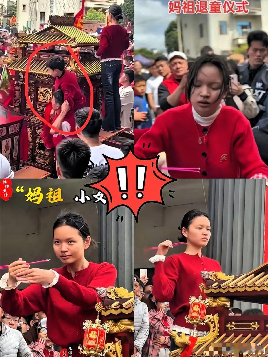 网上有人以为红衣服女孩也是今年才选的妈祖。其实真不是。她很小的时候就已经