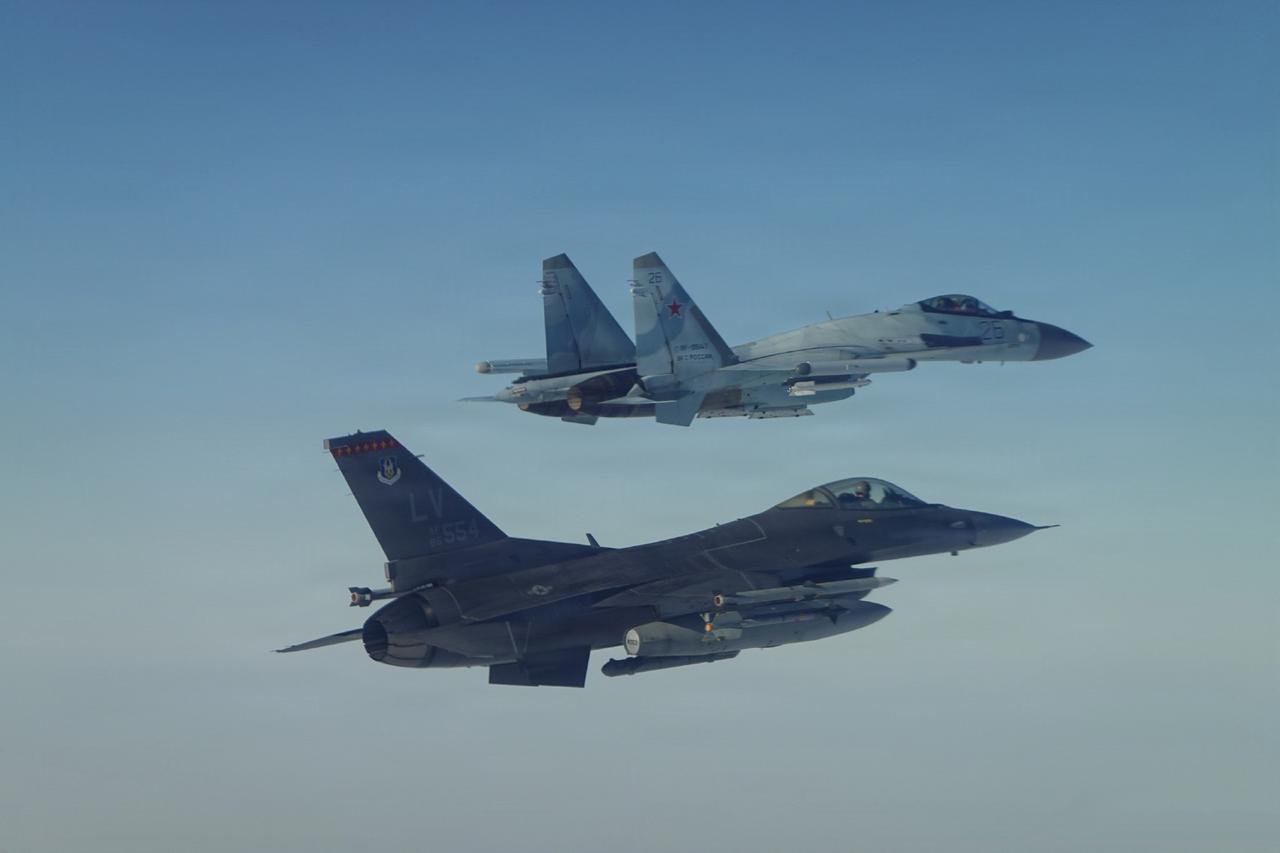 2月19日美国北美防空司令部,公布了在阿拉斯加西部白令海上空伴飞监视俄军飞机画面,俄罗斯出动两架图-95MS战略轰炸机,在两架苏-35S战斗机,以及一架A-50U预警机支持下飞行。 美军则出动F-16、F-35战斗机,E-3预警机,以及KC-135加油机伴飞拦截,显然为了应对图-95MS的巨大航程,美军已经有相当丰富拦截经验。除了轮班伴飞外,还边飞边加油保证全程跟到底,预警机在旁边密切关注,随时准备出手。