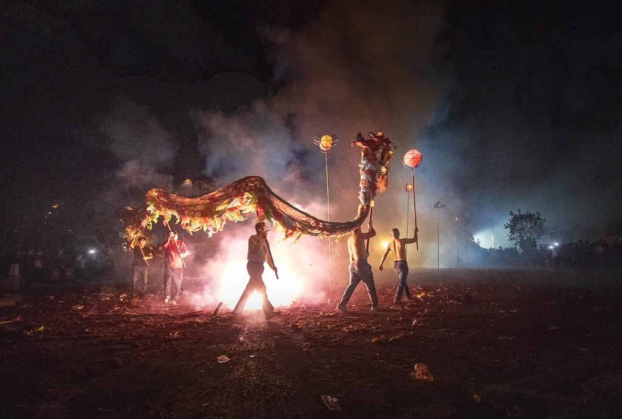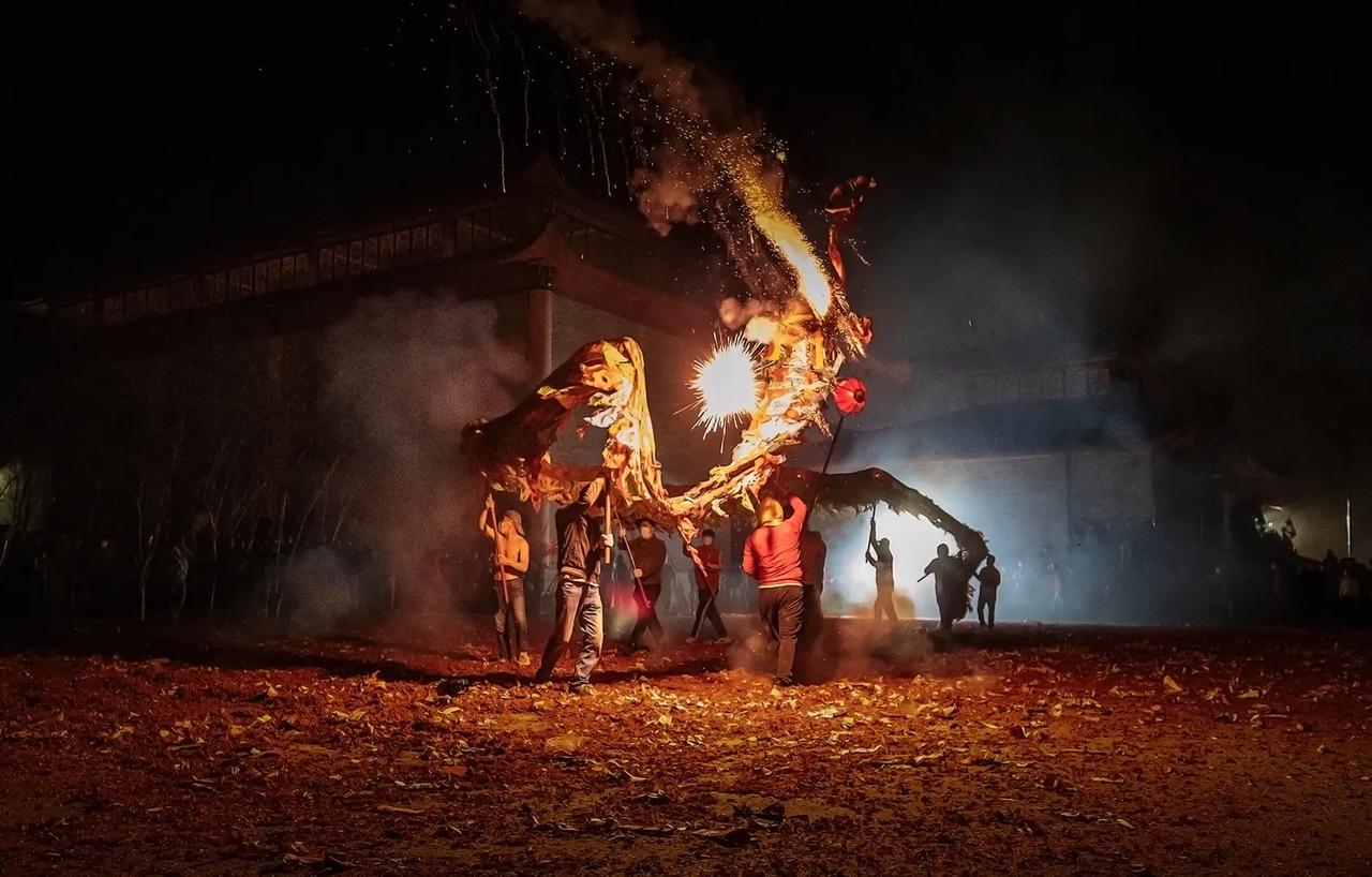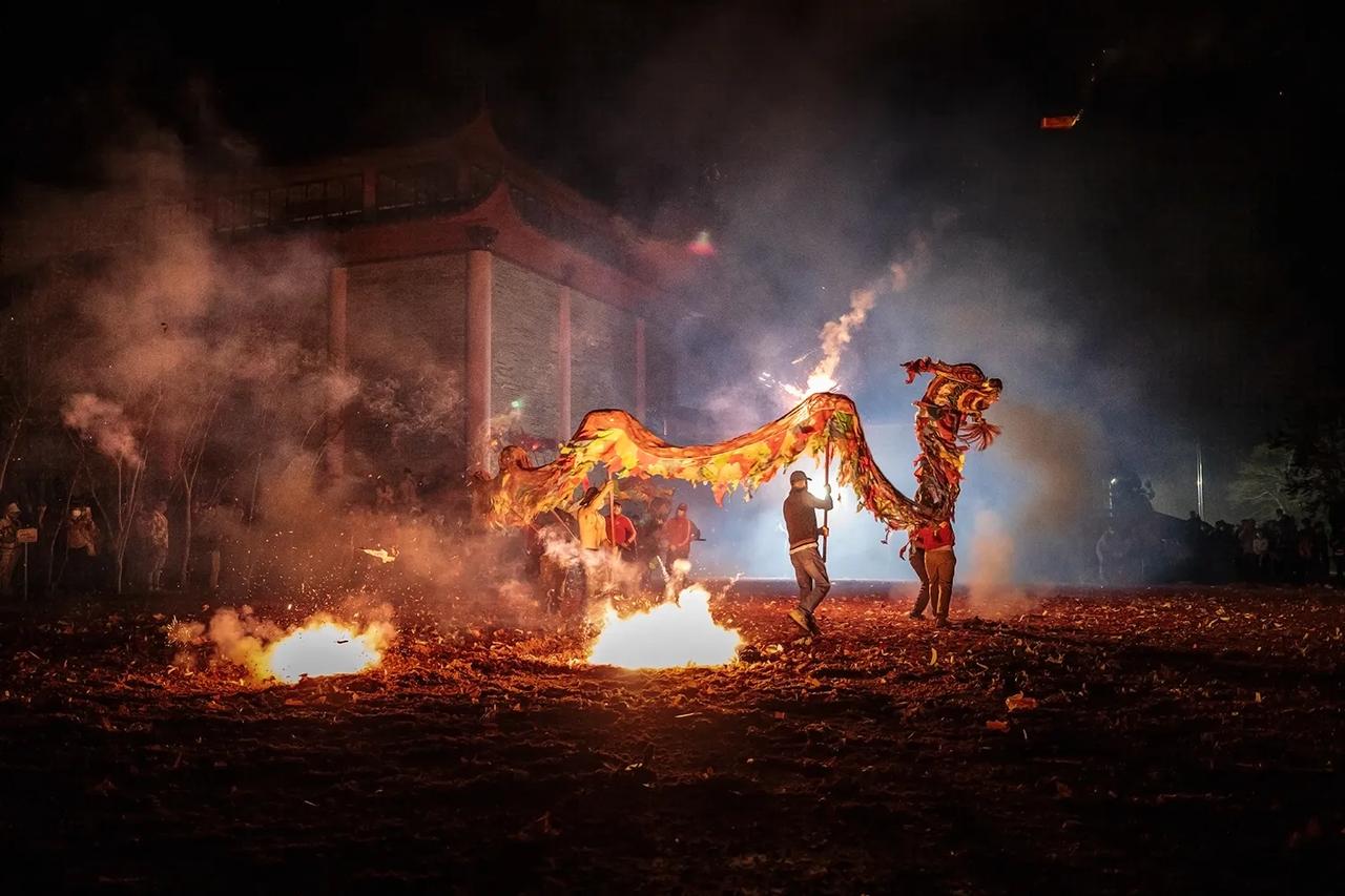 昨晚(年初四),广东省广宁县竹海大观紫竹观广场炸龙。毎年春节期间至元宵节,广宁县一些乡村都有炸龙的习惯,围观群众纷纷点燃鞭炮扔向舞动的金龙,寓意驱邪避晦,寄托着人们对新一年风调雨顺、生活红火的美好愿望。