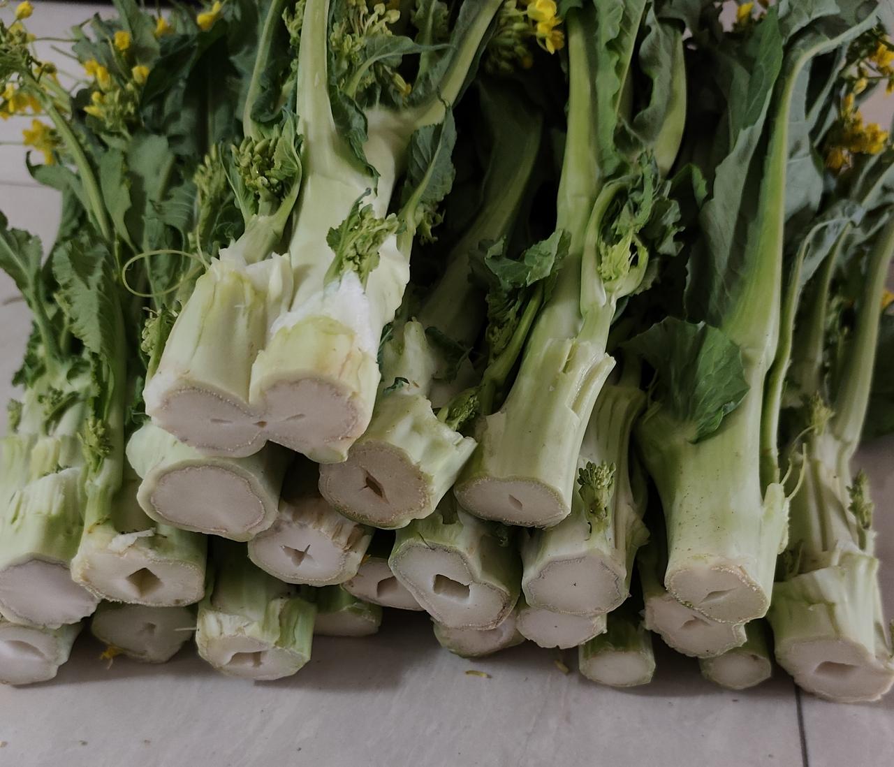 说一说增城迟菜心好食的标准:淋,甜,无渣,增城迟菜心是需要在比较冷的时候才会生长缓慢的,最佳温度是0度-6度左右,要连续保持这个温度才好吃,增城的迟菜心可以长得很高大,但是今年过年这几天都很热,达不到0度-6度的低温要求,所以这个迟菜心也因为气温高,生长快,已经老了,菜心的梗可以切粒煲粥,菜心可以用油盐水煮。