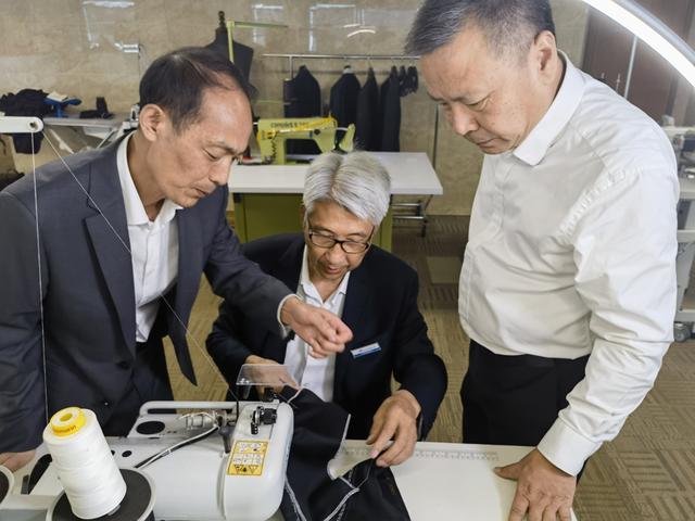 他至今清晰地记得团队为国际质量协会专家吉米・哈林顿定制西服的经历。这位专家身高1.9米、体重达200公斤,平日里就很难买到合身的成衣,量体时甚至一把卷尺都不足以完整测量。面对这样的特殊体型,大家突破常规裁剪思路,反复研究方案,最终采用平面裁剪与立体裁剪相结合的方式,完成了这次“极限挑战”——一套西服外加两条裤子,用料足足8米,是常规用量的两倍。