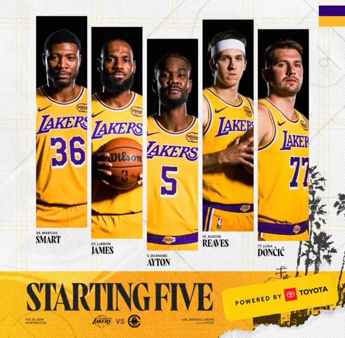 湖人首发:东契奇、里夫斯、斯玛特、詹姆斯、艾顿快船首发:邓恩、琼斯、伦纳德、科林