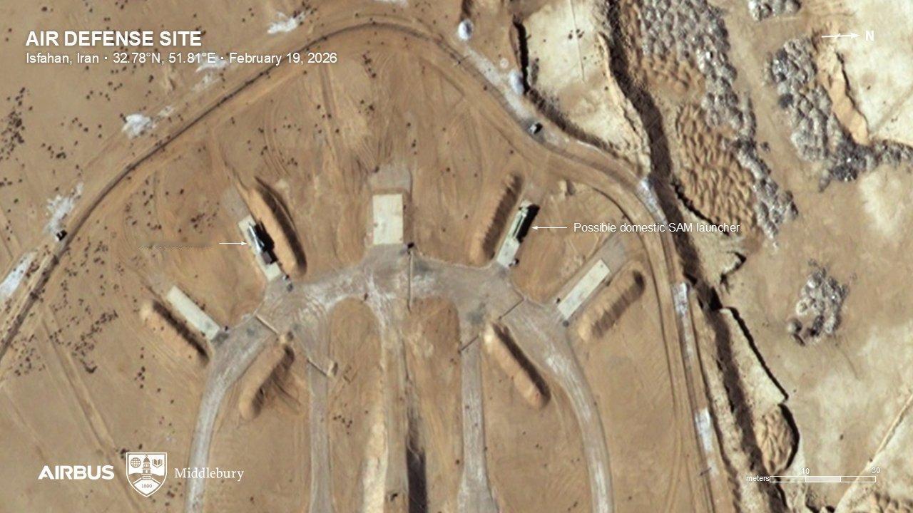 近期对伊朗位于伊斯法罕和德黑兰的三个主要S-300防空导弹阵地进行的卫星图像显示,相关的火控雷达并未出现在其通常的部署位置。在伊斯法罕的阵地,图像显示了一个类似伊朗“15 Khordad”系统的发射装置。在德黑兰,可以看到一个与“Bavar 373”系统结构相似的发射装置。在德黑兰的一个阵地测量到的发射装置长度约为15至16米,与之前在伊斯法罕郊外发现的S-300发射装置尺寸相符。其他图像显示,可能存在一个伊朗国产的防空导弹发射装置,很可能是“Bavar 373”,这表明伊朗可能正在整合剩余的系统。德黑兰以西的另一个防空阵地似乎也部署了另一个S-300发射装置。然而,由于没有发现可见的火控雷达,因此存在疑问。一些发射装置可能是诱饵,例如充气模型或结构模型,旨在干扰分析。合成孔径雷达图像有助于判断这些资产是运行中的系统还是欺骗手段。图片来源:Planet Labs 和空客