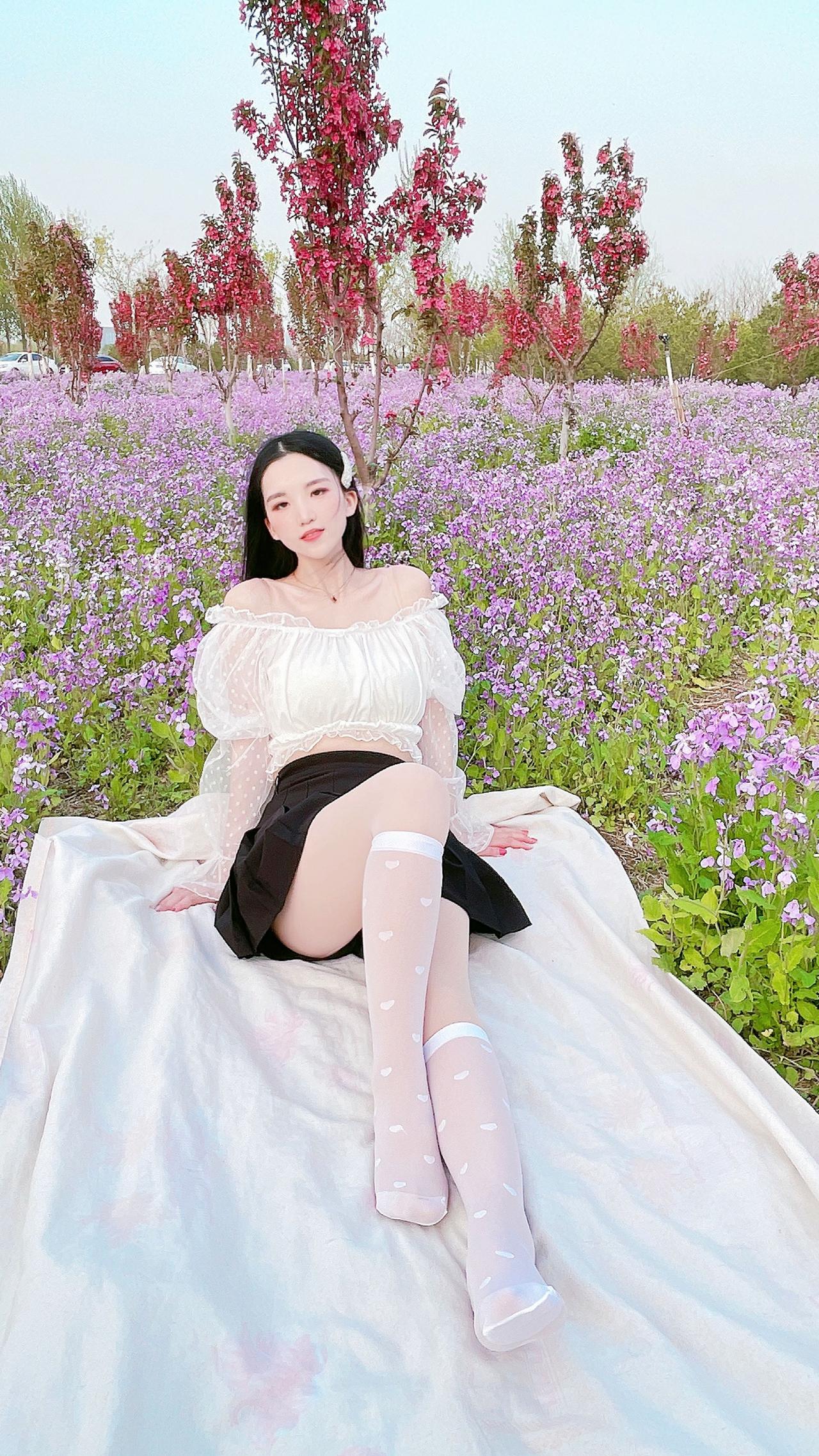 一起去春游美女 小腿袜 白袜 破五