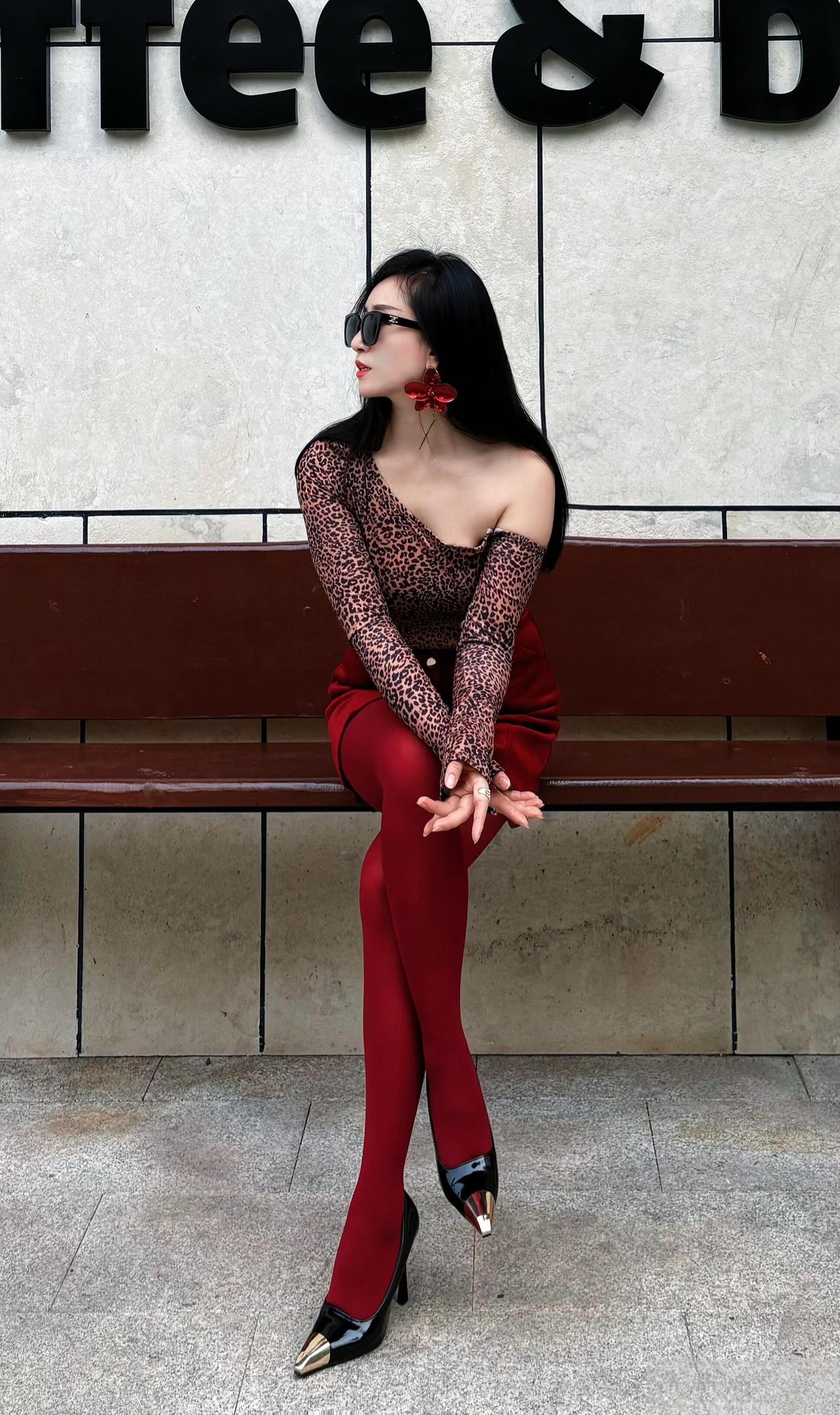 这套穿搭太有“复古辣妹感”了!豹纹一字肩上衣自带野性氛围,酒红短裙+同色袜子把明艳感拉满,拼色尖头鞋是精致的点睛之笔,又媚又飒的风格特别吸睛。豹纹控穿搭 豹纹一字肩上衣