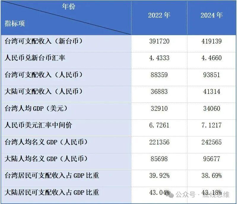 近年来,台湾民进党当局热衷于在人均GDP指标上大做文章,以宣扬其相对于大陆的所谓“优越性”。台湾地区领导人赖清德近期在接受外媒采访时就大放厥词,称大陆不应考虑“如何扩张”,而是要“把民众照顾得更好”,而台湾“乐意帮助大陆解决经济问题”。 对此,国台办发言人陈斌华回应称:“预计2025年台湾GDP不如大陆许多省,真不知赖清德哪里来的自信。”但台湾“陆委会”政务副主任委员梁文杰仍不依不饶,称台湾人均GDP远超大陆,而且大陆“经济发展不平衡”。梁文杰对记者强调,就人均水平及贫富差距来说,台湾的表现明显优于大陆。 可以看出,民进党当局的逻辑是,人均GDP是衡量政府能否把民众照顾得更好的核心指标,人均GDP账面数字的差距就等于两岸的民生福祉差距。 2026年1月30日,台湾“行政机构发布公告,称去年台湾经济增速预计为8.63%,创下自2010年以来的新高,人均名义GDP达到39477美元,逼近4万美元,而2025年中国大陆的人均名义GDP为人民币99665元,折合13953美元,只占台湾的35.3%。 就台湾当局公布的数字来看,似乎台湾地区的人均生活水平已经遥遥领先大陆。但事实真的如此吗? 根据台湾行政部门发布的家庭收支调查报告,从2022年到2024年,台湾人均可支配收入从391720新台币增至419139新台币,分别折合人民币88359元和93851元,而大陆人均可支配收入从36883元上涨至41314元,占台湾比重达到44%。 如果对比同一时期两地的人均名义GDP,就能发现一个十分重要的现象(表1):2024年,台湾居民可支配收入占GDP的比重只有38.69%,相比2022年还下降了1.2个百分点,而大陆居民人均可支配收入占GDP的比重达到43.18%,相比2022年有所上升。这说明,在提升居民收入在国民收入分配中的比重这方面,大陆优于台湾。台湾居民从GDP中得到的实际收益低于大陆居民。 世界不平等数据库(World Inequality Database)统计了各经济体中不同收入水平的群体在国民总收入中的占比,可以帮助我们进一步透视台湾和大陆的分配差异(表2)。 2024年,台湾最富有10%和1%人口的收入总额占全民总收入的比重,分别比大陆高出4.7和3.6个百分点,而底层50%人口的收入总额占全民总收入的比重,又比大陆低1.9个百分点。若计算最富有10%人口的收入总额与底层50%人口的收入总额之比,台湾是4.16,大陆是3.22。 从统计结果来看,台湾的贫富差距似乎只是比大陆大了几个点。但是,台湾的土地面积只有3.6万平方公里,总人口只有2300多万,大陆的土地面积约为960万平方公里,且包含了各种复杂的地形地貌,总人口超过14亿。两者的人口和面积之比,决定了大陆和台湾解决贫富分化问题的难度完全不在一个数量级。 因为,人口越多,且散布在越大的空间范围内,就越容易产生并放大个体差异,出现极端低值的概率就越高,然后拉大贫富差距;人口越少,且散布在越小的空间范围内,则越不容易产生并放大个体差异,出现极端低值的概率就越低,然后缩小贫富差距。 在人口和面积几十倍于台湾的大陆解决贫富差距问题,需要的治理、协调和动员成本都会指数式增加。反过来说,台湾解决贫富差距问题本应容易得多。结果就导致上述指标所显示的,大陆在统计学意义上的贫富差距就比台湾还要小,说明是台湾内部出现了大量收入上的极端低值,硬生生地改变了整个样本构成,把台湾经济发展的内部差异放大到了不低于大陆的水平。 因此,台湾的实际贫富差距可能比统计数字显示的还要更大。一个接近4万美元的人均名义GDP,和大量台湾底层民众的生活现状是脱节的,无法反映他们的真实生活水平,所以我们才会在台湾新闻里看到从17岁就开始四处流浪、苦苦寻找食物的无家可归者,活活饿死在出租屋里的房客,还有睡在大街上、因寒冷天气而冻死的流浪者。【文|张诚信 兰州大学政治与国际关系学院博士研究生】