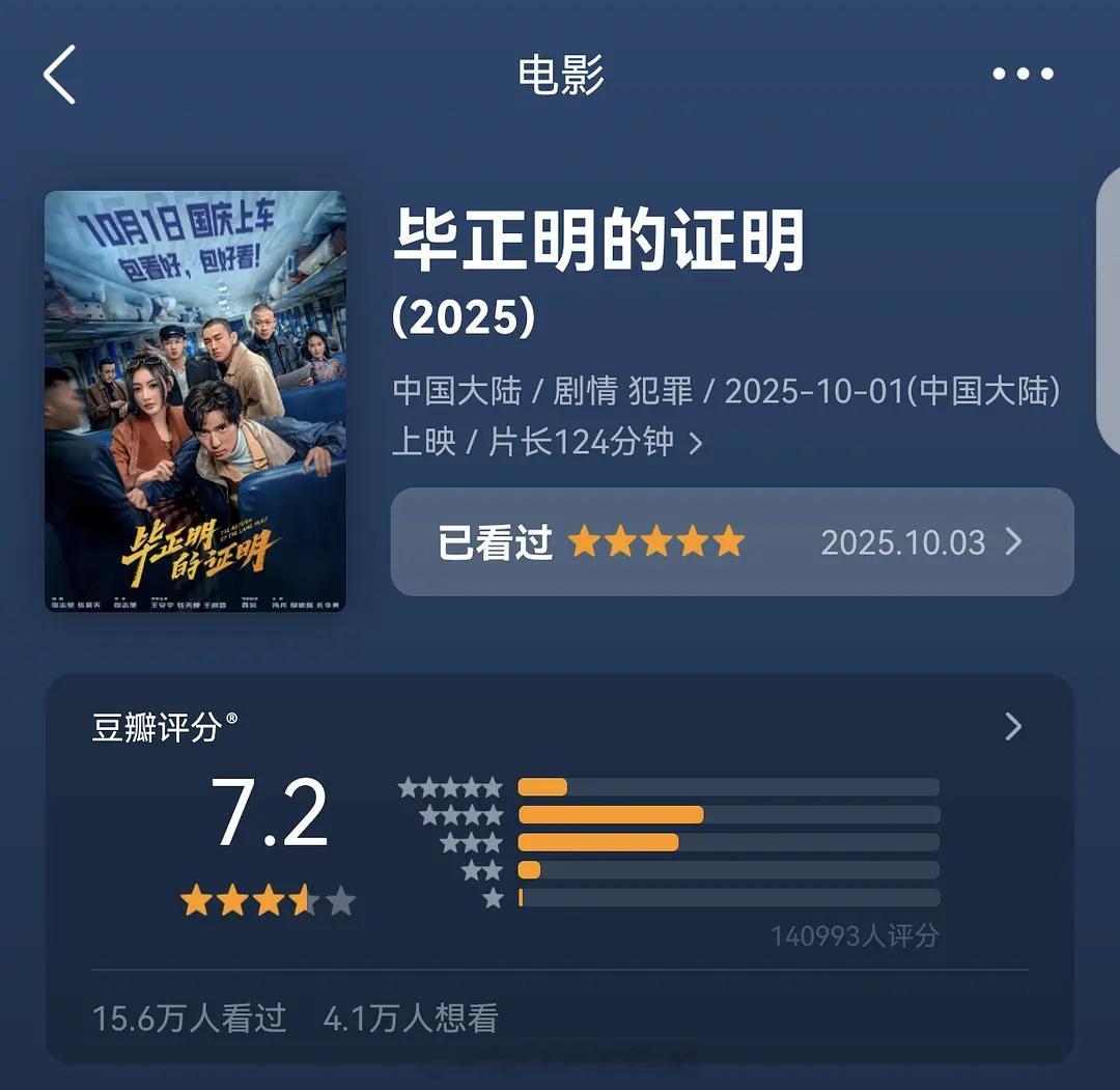 实时豆瓣评分7.2,14万+人评分。怎么说新人电影演员,第一部一番,也算合格了吧这成绩