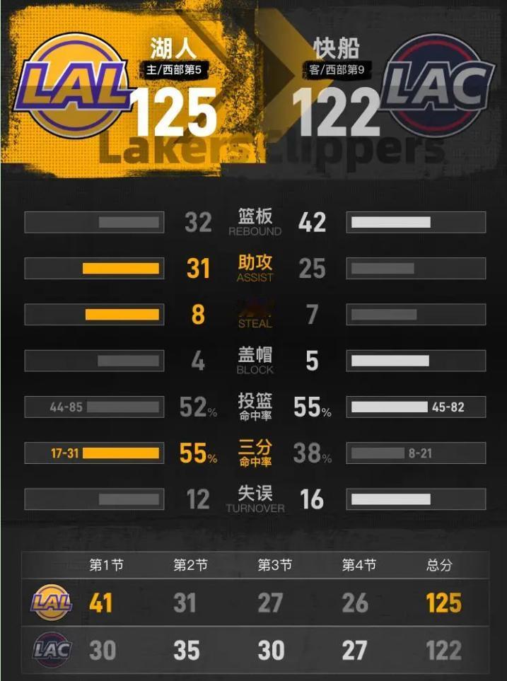 湖人能啃下快船?扯淡。东契奇刚落地,詹姆斯又"装死",这阵容不被伦纳德锤爆就算老天开眼。 第一节打完,我直接从沙发上弹起来。东契奇拿球就干,38分11助攻,这不是来磨合的,这是来登基的。快船防守在他面前纯纯纸糊,离谱。 伦纳德第二节19分,抡冒烟了。搁以前,湖人早崩了。可抬头看比分,快船还落后。为啥?里夫斯这小子横空出世,连中三分硬生生把伦纳德的火力全吃了。底薪高能,稳如狗,真香。 最破防的是詹姆斯。39岁老头终于不用血C了,站底角看年轻人表演,躺赢也能笑出声。这种待遇,他等了太久。 说白了,今天就是验货局。伦纳德31分叫空砍,东契奇38分叫兜底。差别在哪?快船除了卡子哥,其他人跟隐身了一样。湖人呢,里夫斯29分补上火力,全队敢打敢拼,这才是闭环。 以前觉得篮球是超巨的算术题,今天才发现是团队应用题。快船一个人打四个人看,湖人却是东契奇杀疯了,里夫斯也敢投,老头敢歇。125-122,三分险胜,但这三分差的是一整支球队的底气。 看着东契奇和里夫斯击掌,老头在场边笑,突然就觉得,这赛季的湖人,真支棱起来了。不是一个人扛下所有,而是一群人把压力揉碎了分担,这才是篮球最治愈的样子。东契奇38+11詹姆斯13+11 伦纳德31分湖人胜快船