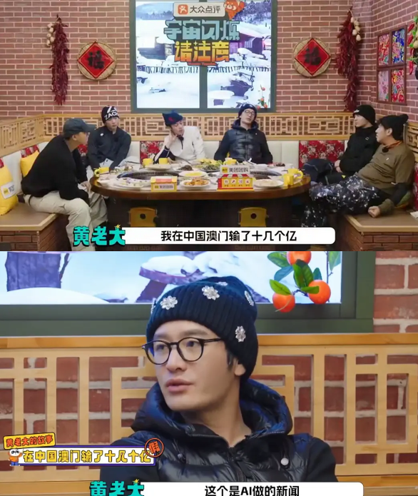 2月21日,知名演员黄晓明在综艺节目《宇宙闪烁请注意》的“真假故事”环节中表示,所谓自己“在澳门输掉十几亿”是AI技术拼接生成的虚假内容。