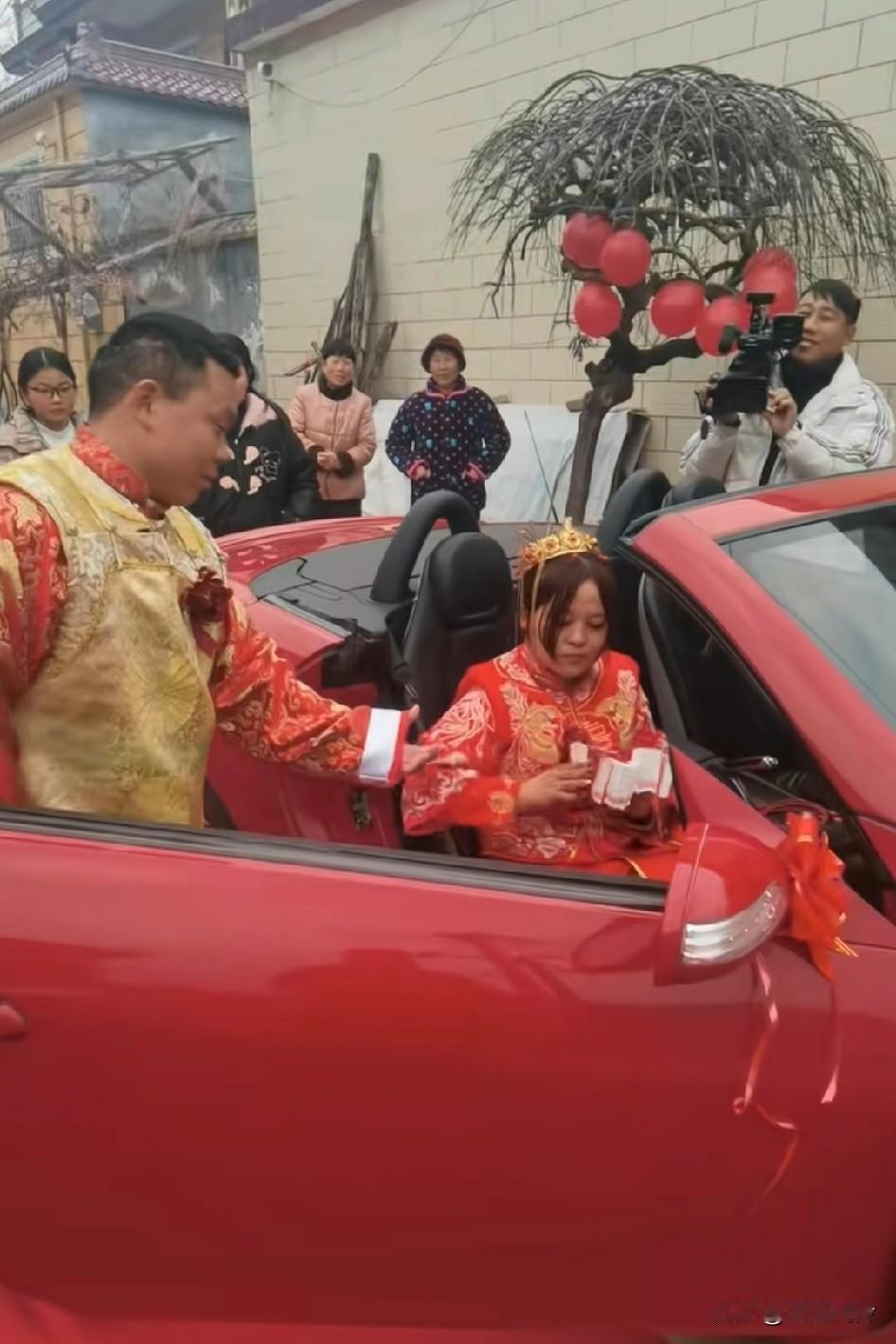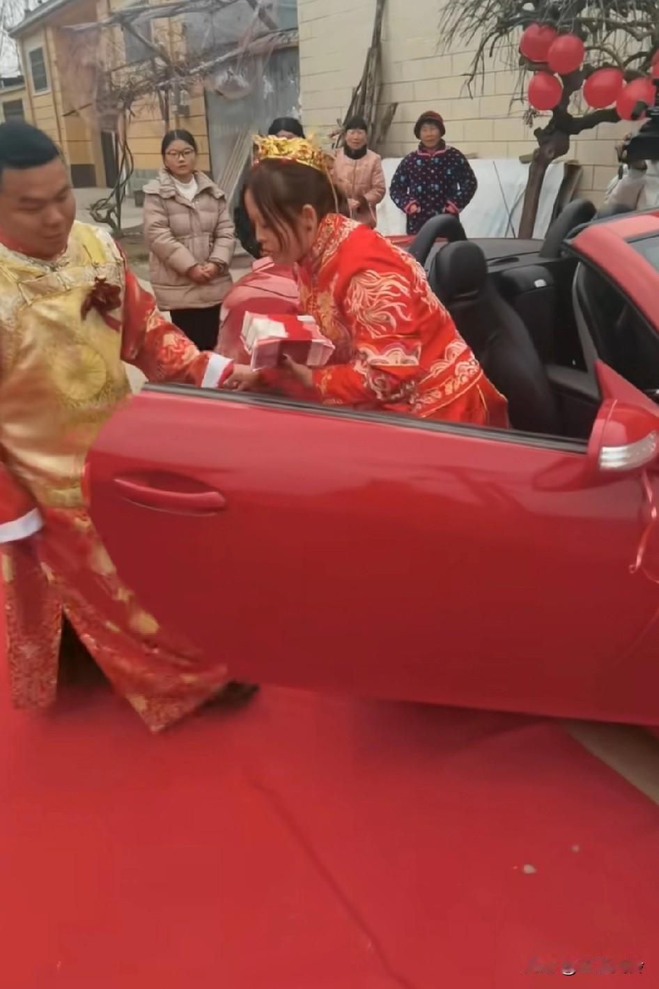 下车礼10万元钱交手上,新娘才肯下车,嘴角差点压不住,没给钱之前脸一拉着 新娘子拿到钱脸上笑开花了,强忍着呢。恭喜生意达成,一手交钱,一手交人。下车费给的好多,一家欢乐,一家愁。现在的婚姻没有几十个W结不起,变味了。喜公公攒了大半辈子的钱,全交给新娘了,花钱买个祖宗回家,一家人小心翼翼伺候着,稍有不如意就消失。