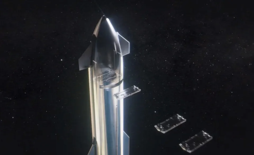 星舰部署星链卫星概念图。SpaceX