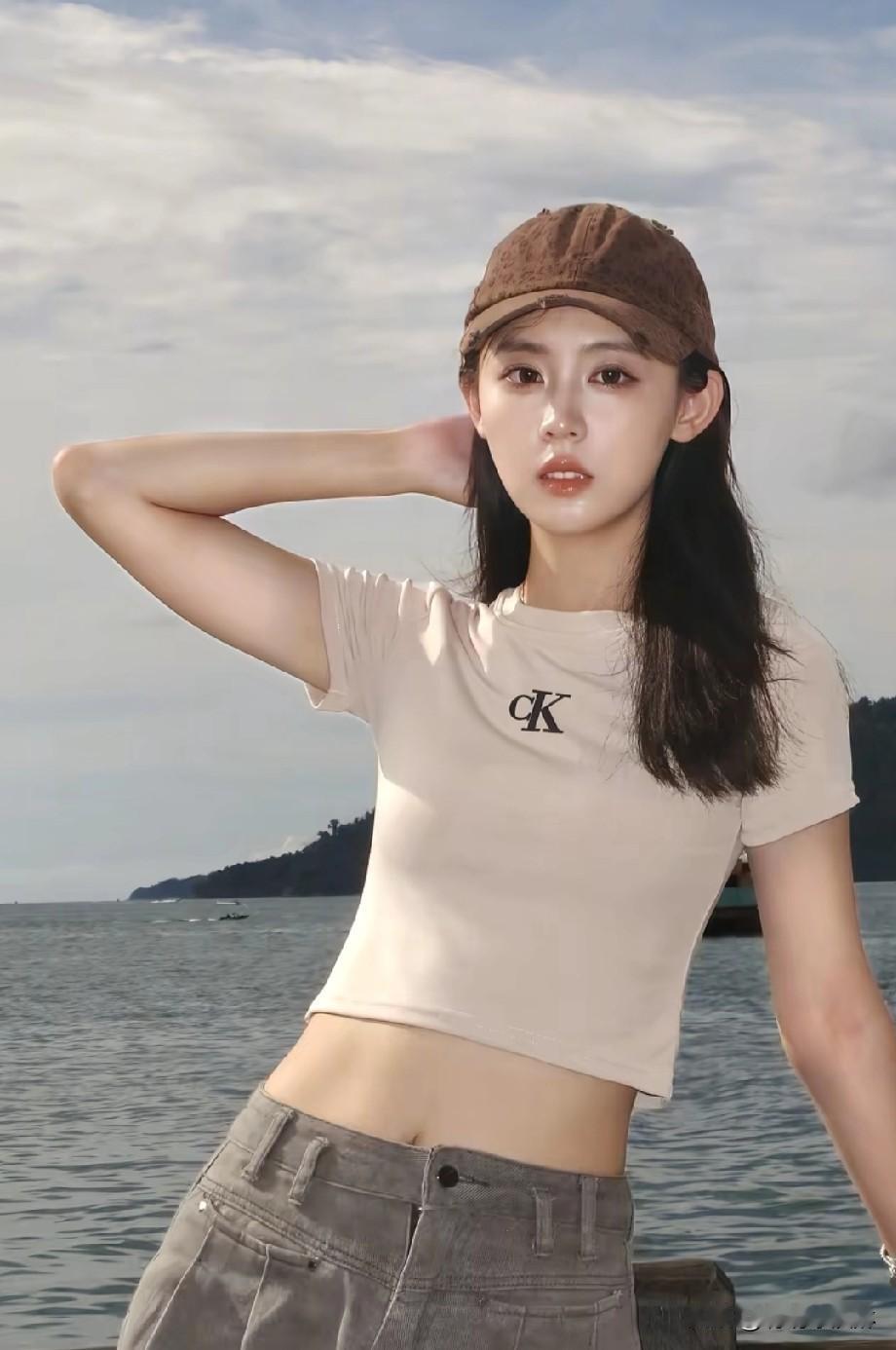 阳光下的少女,湖边的休闲时光