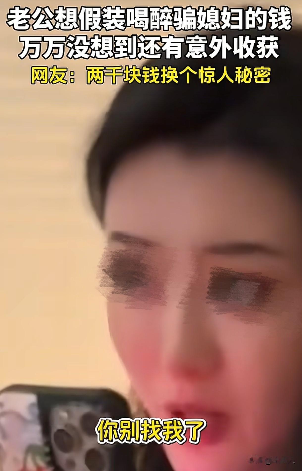 “戏中戏!”黑龙江,男子假装醉酒,说自己藏了私房钱,想给妻子买个像样的礼物,可自己还差2000元,他本来是想打动妻子,骗媳妇拿点钱出来贴补自己。可没想到妻子点完钱后,拿出手机,对着手机说:“你别找我了,我爱我老公!”男子猛然惊醒。网友:万万没想到,还有意外收获,2000换个惊人秘密,值了! 男子早早就躺到了床上,还故意装出一副喝得醉醺醺的样子,闭着眼睛,嘴里时不时嘟囔几句,男人妻子坐在床边,刷着手机。 突然,男子迷迷糊糊冒出一句:“别碰我钱!” 妻子一下子愣住了,以为自己听错了,赶紧凑近问:“啥钱呀?” 男子闭着眼睛,含含糊糊地说:“私房钱。” 妻子一听“私房钱”这三个字,眼睛瞬间亮了起来,心里那叫一个激动,可表面上还是装作很淡定,轻声细语地问:“老公,你这私房钱藏哪儿啦?” 男子闭着眼睛,装作很诚实的样子说:“就在枕头底下呢,这是我过年准备给我媳妇买礼物的钱,差2000块,结婚到现在,我连像样的礼物都没送给过她,我真不是个好老公。” 妻子听完男子的深情告白,心里乐开了花,赶紧从床头柜拿出自己的钱,认真的点了起来,男子见妻子上当了,心里暗喜,继续自己的表演:“我想把我所有的一切都给她,我爱我老婆。” 妻子把钱放在枕头下,满脸笑容的亲了一口丈夫,男子故意把身子往旁边挪了挪,嘴里说着:“别碰我,我是有媳妇的人。” 妻子有些惊愕,随后像突然想到了什么,拿出手机,对着手机轻声说“你别找我了,我爱我老公!” 男子原本还闭着眼睛装醉,听到这话,一下子懵了,睁开眼睛,一脸疑惑地看着媳妇。 有网友说:如果这不是段子,那恭喜兄弟,2000元破获大案,揪出媳妇的秘密,这2000元值了。 男子本来想用醉酒来骗媳妇的钱,没想到却听到了妻子的秘密,如果这不是段子,而是真实发生的事情,那女子的行为是不妥的。 《民法典》第1043条规:家庭应当树立优良家风,弘扬家庭美德,重视家庭文明建设。夫妻之间有互相忠诚、互相尊重的义务。 夫妻之间有相互忠实的义务,既然结了婚,就要对婚姻忠诚,对家庭负责。 如果女子已婚,还跟来人来往,那这种行为违背了夫妻忠实义务,有悖于公序良俗,是不道德的,理应受到谴责。 夫妻之间,可以开些小玩笑,或者彼此藏着一些小秘密,但是伤害夫妻感情的事情是不能做的。
