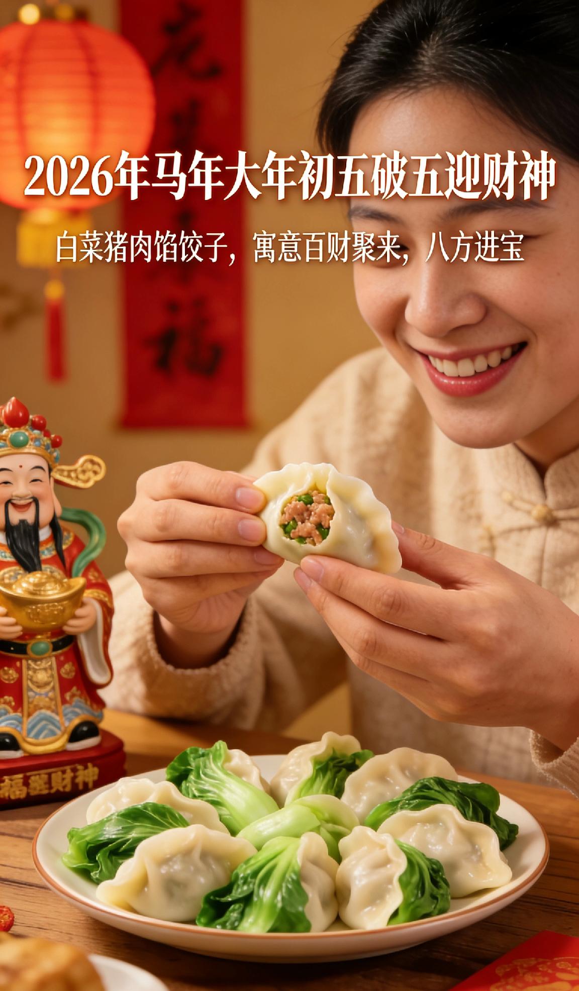 大年初五捏元宝,迎财神咯! 在咱蒲城,破五的饺子可是“招财神器”,咬一口,福气就往心窝里钻。老辈人传下来的讲究,这几种“财运馅”,今儿个必须安排上👇 ✅ 韭菜鸡蛋馅——久财 一把嫩韭菜,俩土鸡蛋,香得很! 寓意日子长长久久,财源细水长流,马年天天有进账~ ✅ 白菜猪肉馅——百财 “百财聚来”的好意头,谁能拒绝? 肉香混着白菜的清甜,咬开的瞬间,八方进宝的福气就裹满了嘴! ✅ 芹菜肉馅——勤财 咱蒲城人过日子实在,信的是“勤劳生财”。 这馅吃进肚里,新的一年越干越有,凭本事赚个盆满钵满! ✅ 酸菜肉馅——算财 偶尔换个口味,也是“精打细算,越算越富”的吉兆~ 酸爽解腻,把一年的小日子算得明明白白,只进不出! 热气腾腾的饺子端上桌,一口一个“金元宝”,就着咱陕味儿的醋,那叫一个美! 今儿个你家包的啥馅?评论区唠唠,咱一起接财神,马年财源哒哒跑!🐴💰 大年初五吃饺子 迎财神 蒲城年味