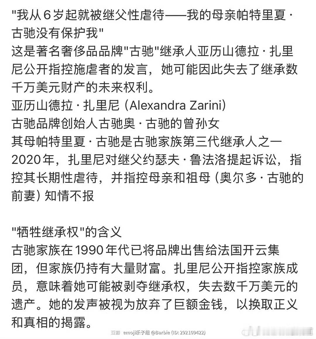 Gucci继承人放弃继承权,控告继父从6岁就开始⭐️虐待她、母亲祖母不作为