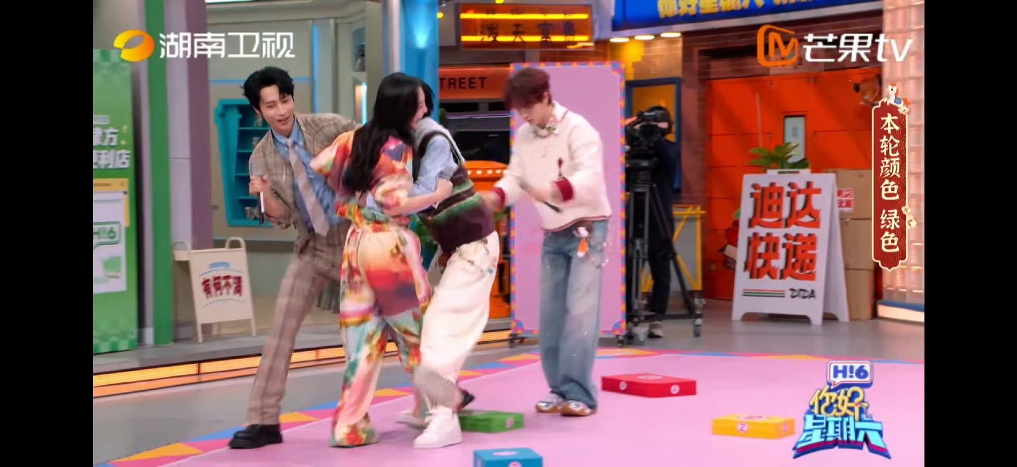 吴昕一掌推翻一团人 瑜伽砖争夺战高能时刻!吴昕一掌发力,三人瞬间被推开,场面混乱又搞笑!你好星期六