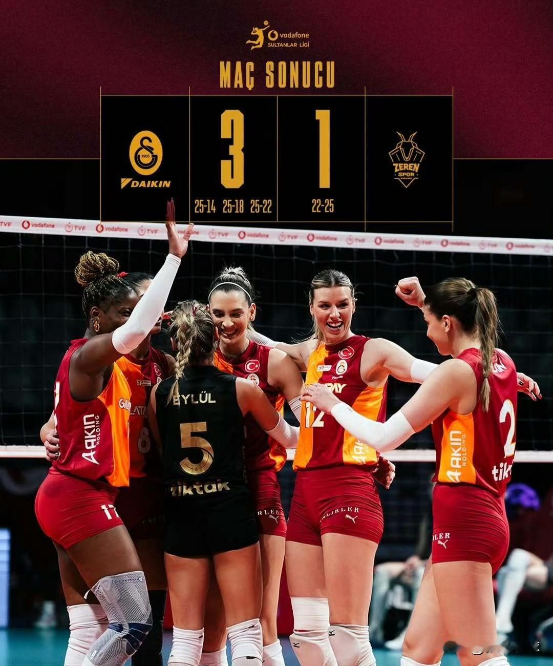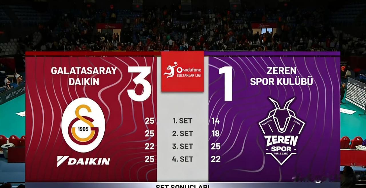 【王媛媛7分2拦 23轮加拉塔萨雷战胜泽仁体育 暂升四强】 土超女排第23轮,加拉塔萨雷主场 3-1战胜泽仁体育,四局比分分别为25-14、25-18、22-25、25-22。加拉塔萨雷各项赛事4连胜,并终结了泽仁体育正式比赛6连胜记录,泽仁体育遭遇进入2026年自然年度以来的联赛第2败。 截至目前,泽仁体育18胜5负积49分暂列第三,加拉塔萨雷队16胜7负同积49分本轮先赛情况下暂时升至第四。 王媛媛首发4局7分,10扣5中0失误2被拦+成功率50%/有效率30%,2拦4次撑起,王媛媛稳定发挥,助加拉塔萨雷主场3-1力挫泽仁体育。这场比赛拿下并全取3分,使黄红军晋级前4(季后赛)的信心大增;有很大可能在常规赛第25轮对阵伊萨奇巴希的比赛,成为双方争夺最后一张4强门票的生死战。加油! 全场比赛技术统计如下: 扣球得分:加拉塔萨雷66-53泽仁体育 拦网得分:加拉塔萨雷12-7泽仁体育 发球得分:加拉塔萨雷3-4泽仁体育 一传到位率:加拉塔萨雷46%-51%泽仁体育 一传完美到位率:加拉塔萨雷30%-36%泽仁体育 自失送分:加拉塔萨雷15-16泽仁体育 加拉塔萨雷队: 卡鲁塔苏44扣18中,3失误2被拦,3拦2发,23分 伊尔金30扣19中,1失误1被拦,1拦0发,20分 塞拉30扣14中,3失误1被拦,2拦0发,16分 居维利13扣8中,0失误1被拦,2拦0发,10分 泽仁体育队: A.拉扎列娃50扣27中,2失误6被拦,0拦2发,29分 乌泽拉茨41扣11中,1失误3被拦,1拦1发,13分 埃尔库尔7扣3中,0失误1被拦,3拦1发,7分