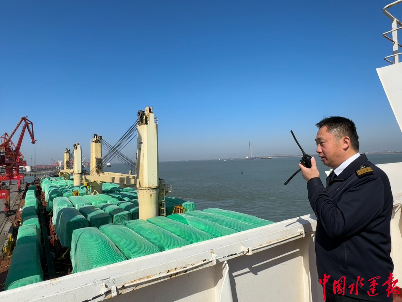 蔡文鹏的引航生涯与国家的开放脉搏同频共振。正月初五,他准时登上装载103台大巴车的马绍尔籍“新海通39”轮,从张家港永恒码头驶向阿尔及利亚;2月18日、2月20日,他分别引领“多丽丝”轮、“华航汉亚5”轮安全靠离张家港港新重装码头,保障“一带一路”货物及时装运。截至目前,他已累计安全引领发往“一带一路”沿线国家的大型设备运输船百余艘次,货物总值超60亿元,为中国制造扬帆远航保驾护航。从新能源设备远赴意大利,到中国制造大巴车驶往阿尔及利亚,每一艘经他之手安全出入长江的巨轮,都是“水上国门第一人”使命的生动践行。据统计,今年春运以来,蔡文鹏同志共安全引领中外籍船舶19艘次,载货量24万吨。