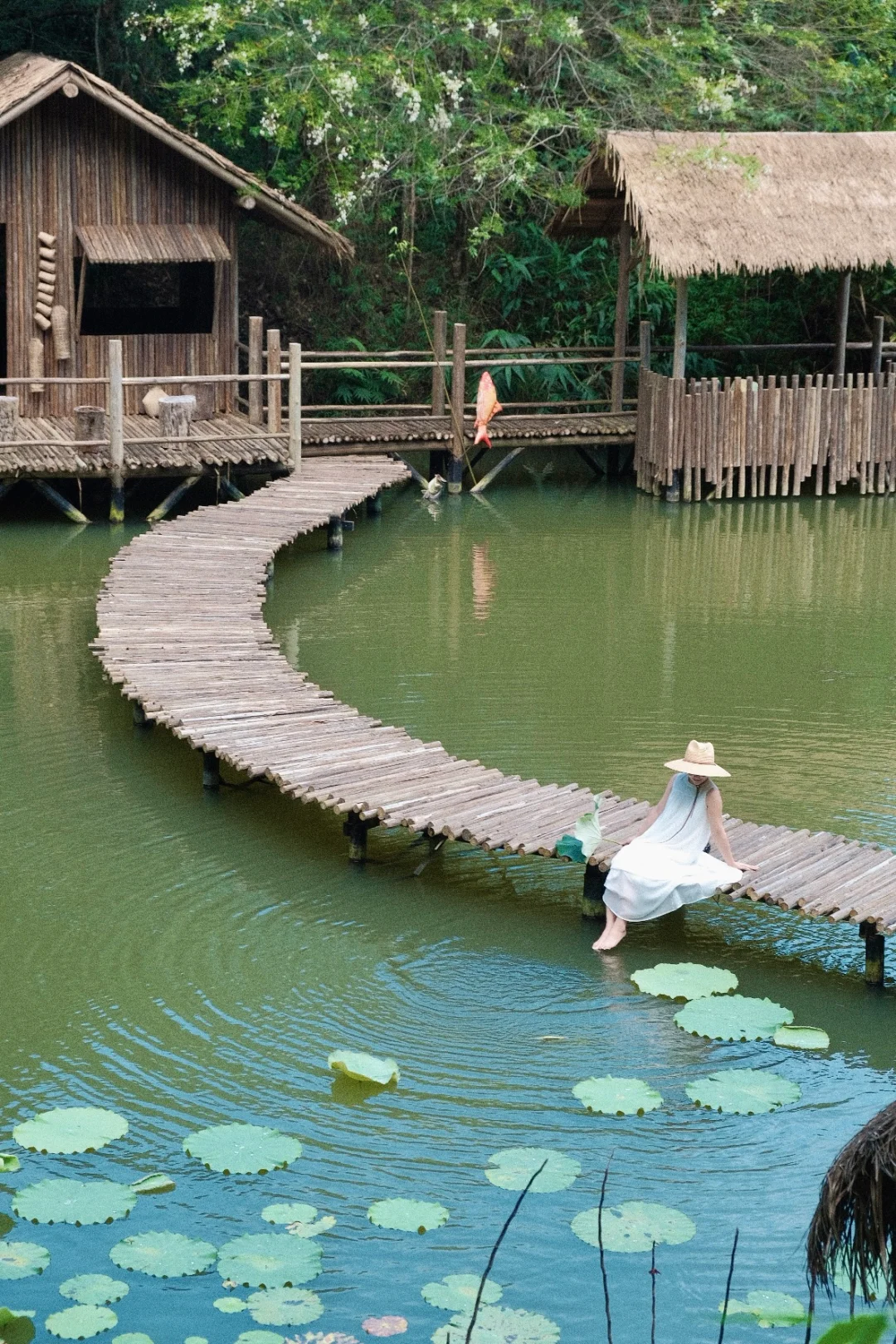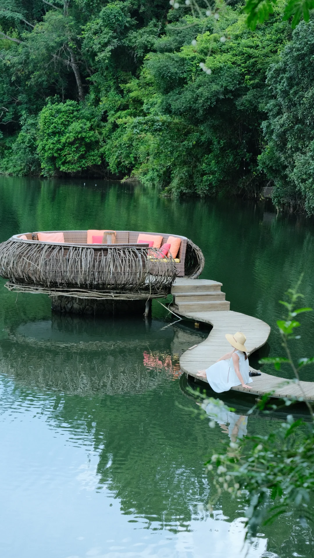 最爱这里的树屋!直接建在林中湖畔,推开窗就能摸到树叶。早上被鸟叫醒,晚上在露台看星星,太惬意了✨。湖边的栈道在雾气里弯弯曲曲的,沿着溪水走还能玩水,感觉像闯进了绿野仙踪~