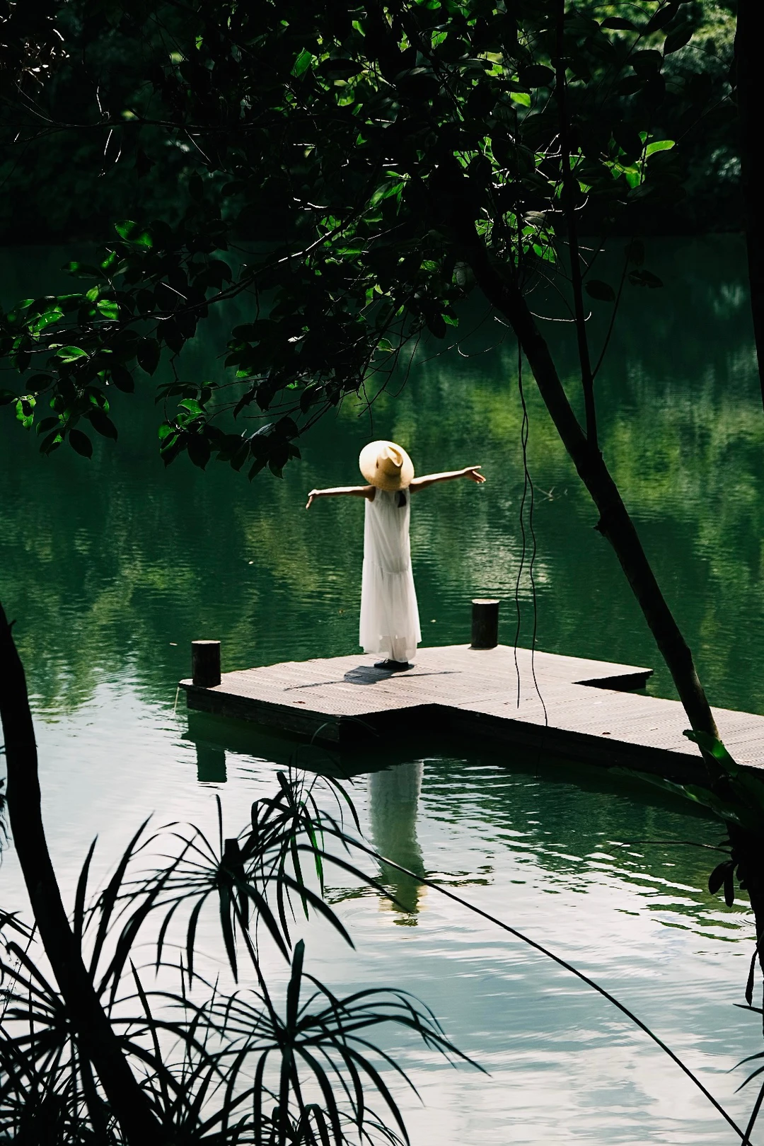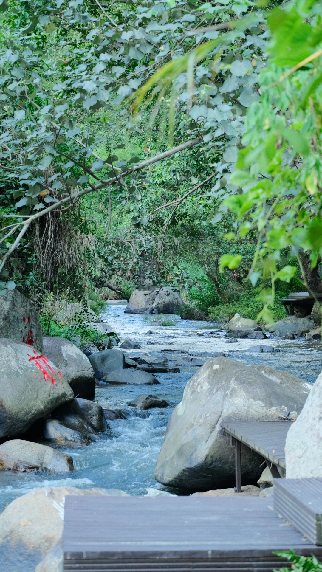 这里真的很有原始森林的感觉,不像那些人工造景。古树、藤蔓、溪水,阳光透过树叶缝隙洒下来的时候,美得像星星掉水里了一样💫