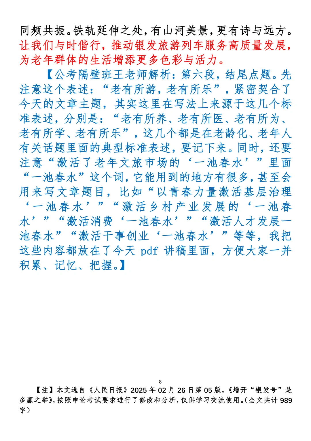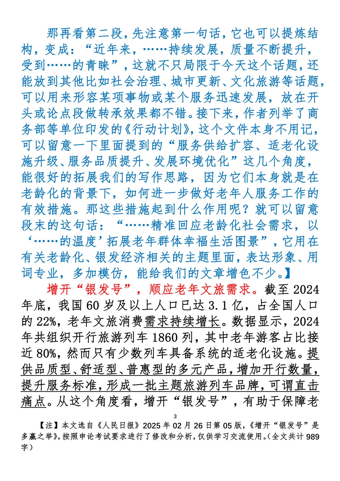 如何抄写:每日抄写文章发在“公考隔壁班王老师”账号,红色字是重点句和结构句,黑色字是正文,蓝色字是解析,大家抄写时不必抄蓝色字。建议先通读全文,做到心中有数再开始抄写,效果会更好。 关于文章:抄写文章来源于人民日报,但每篇文章我都根据申论考试要求进行了修改:一是重写或修改开头、结尾;二是统一段首句句式结构;三是调整段落字数,使文章结构更均衡;四是简化复杂长难句,使之更具可模仿性。每篇文章无论修改多少,都是基于申论考试要求,毫无对人民日报文章品评之意。(此处致敬人民日报)