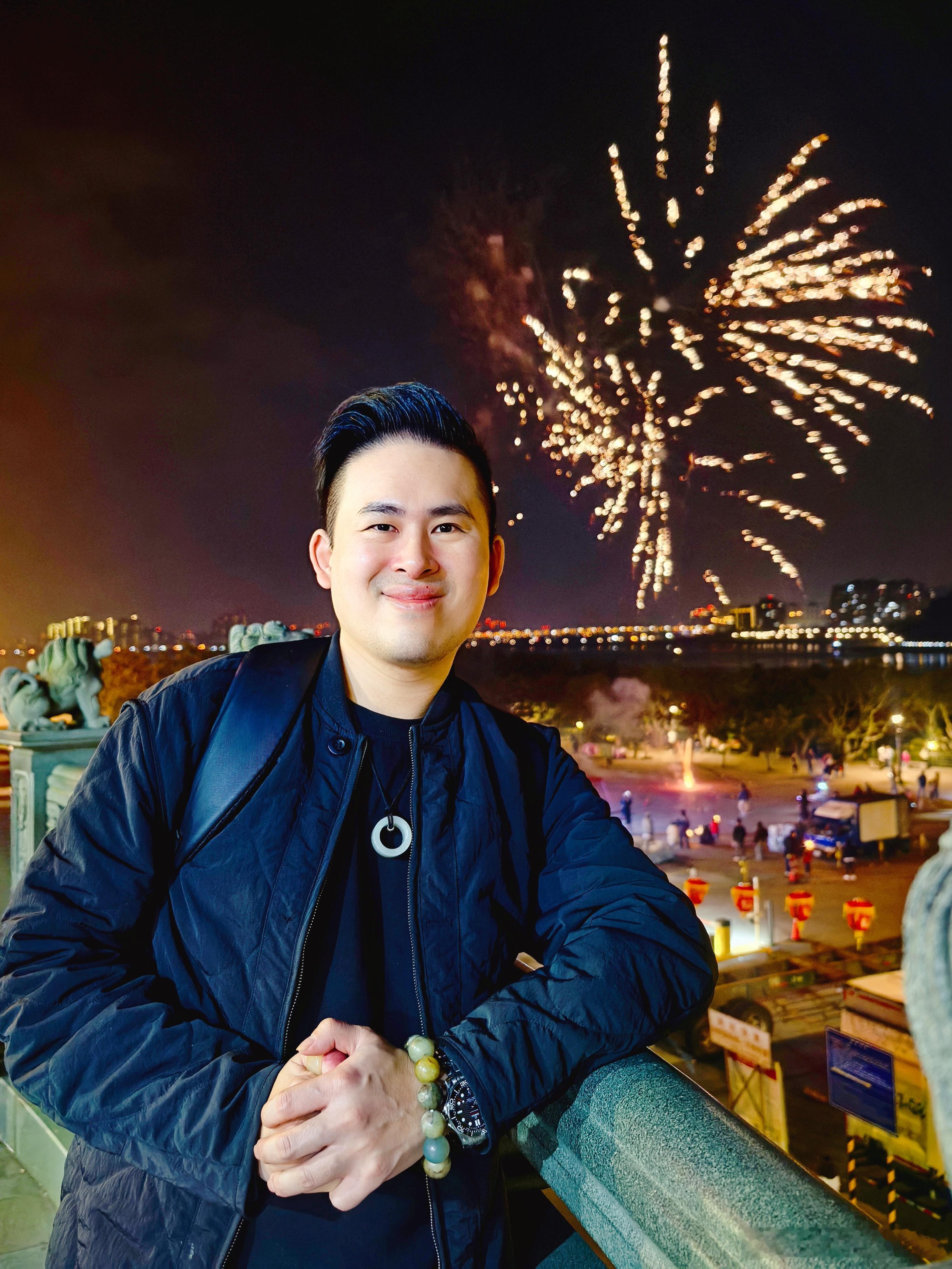 入夜之后,正好又碰上游客施放炮仗、烟花,我与内人也赶巧欣赏了一场又一场烟火秀,再听那爆竹声此起彼落,真是春回大地,年味十足! 中国台湾·关渡宫