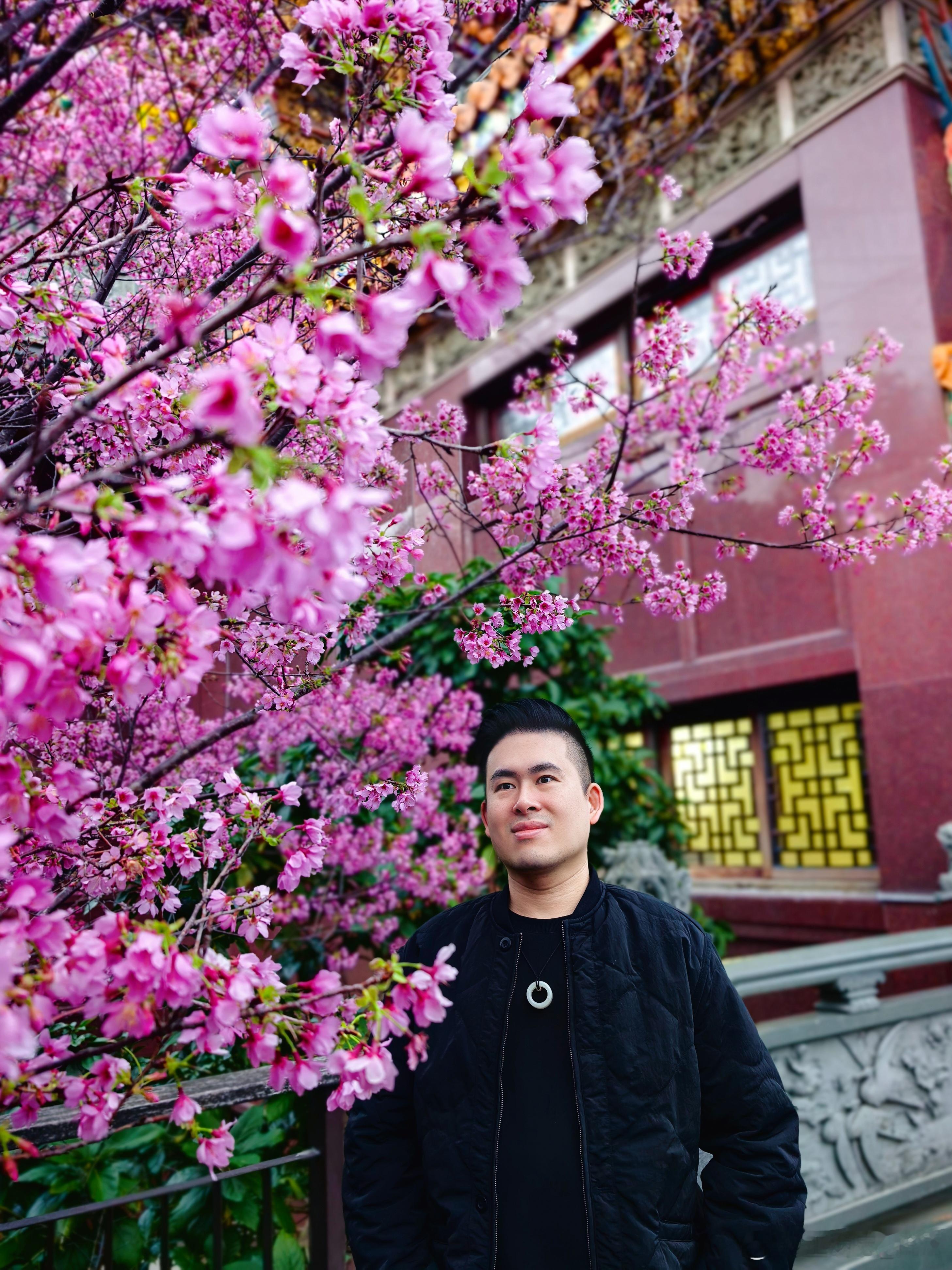 今天大年初五,还有一丛又一丛的桃花、樱花盛开,同时虽是阴天,仍可见一抹夕阳云霞,甚是惬意。