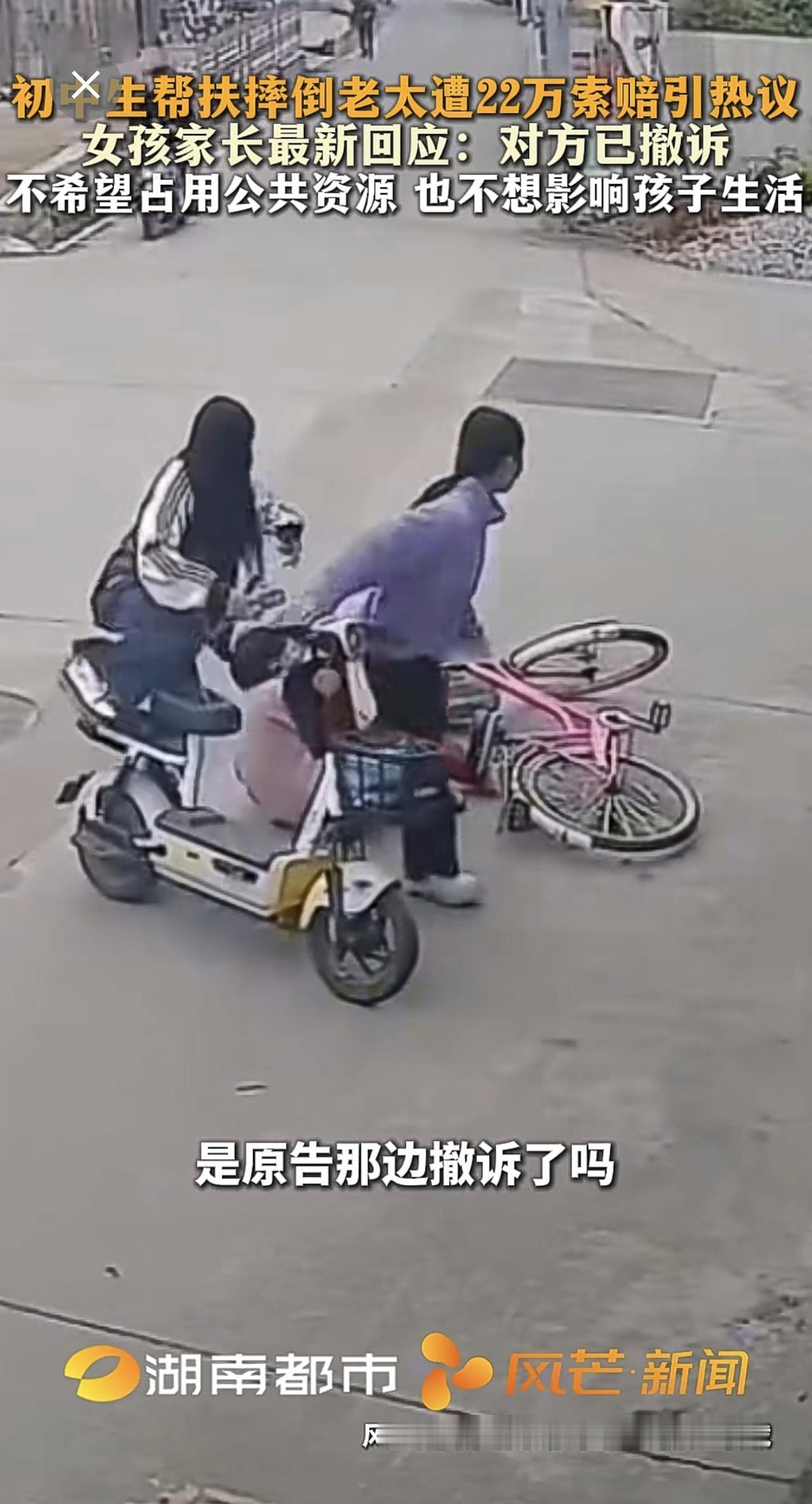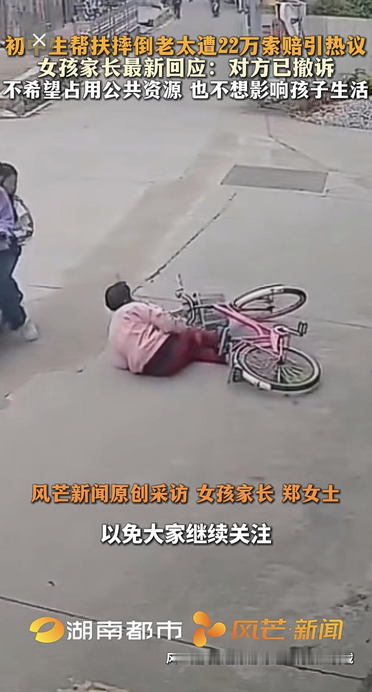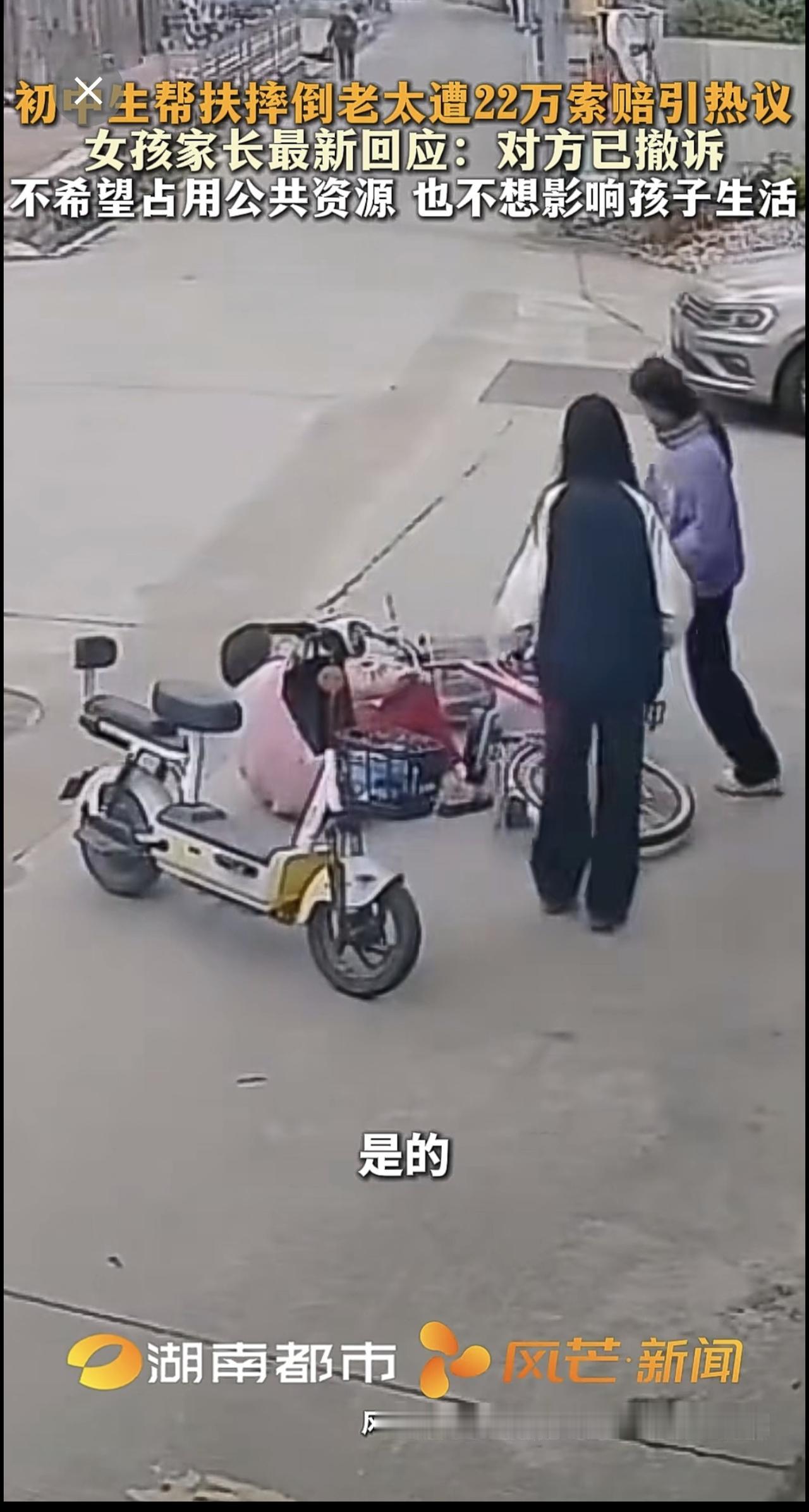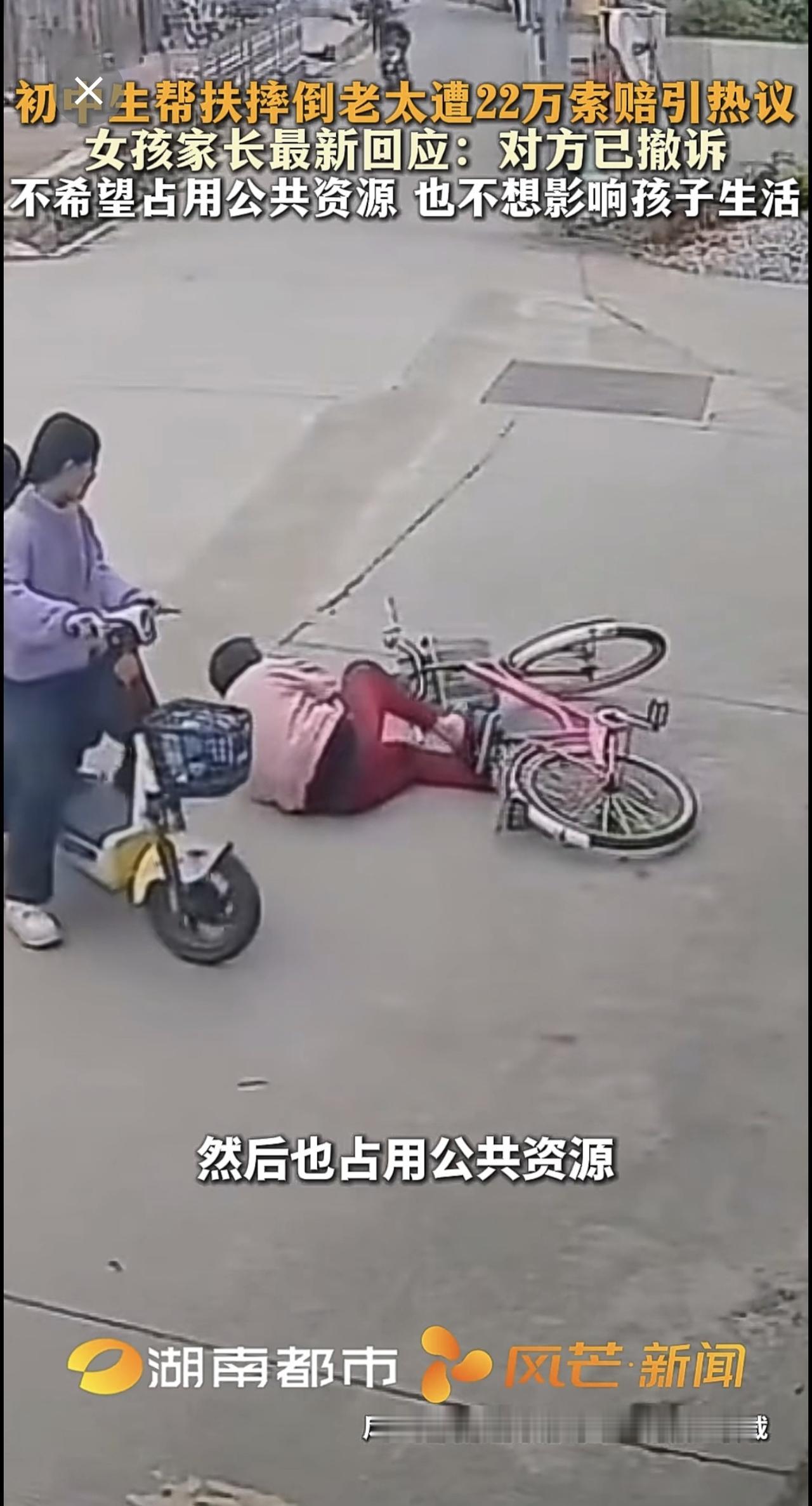 初中生帮扶摔倒老太遭22万索赔引热议 女孩家长最新回应:对方已撤诉 不希望占用公