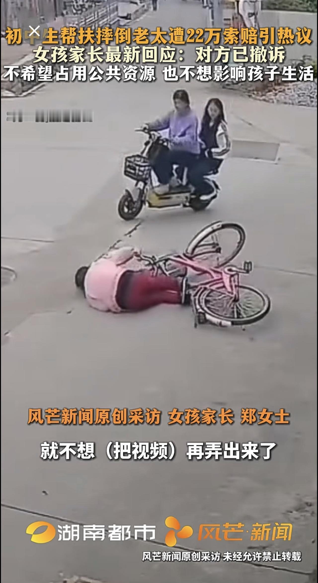 初中生帮扶摔倒老太遭22万索赔引热议 女孩家长最新回应:对方已撤诉 不希望占用公共资源 也不想影响孩子生活