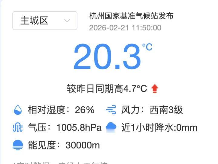 今天(2月21日)是正月初五,杭州天气也不错,阳光明媚,中午12时不到,杭州主城区气温也顺利突破20℃,春意盎然。昨天,丽水、绍兴、衢州、金华官宣进入气象学意义上的春天,加上之前官宣入春的温州,浙江已有5地率先进入气象学意义上的春天!你那里今天几度?vi@都市快报
