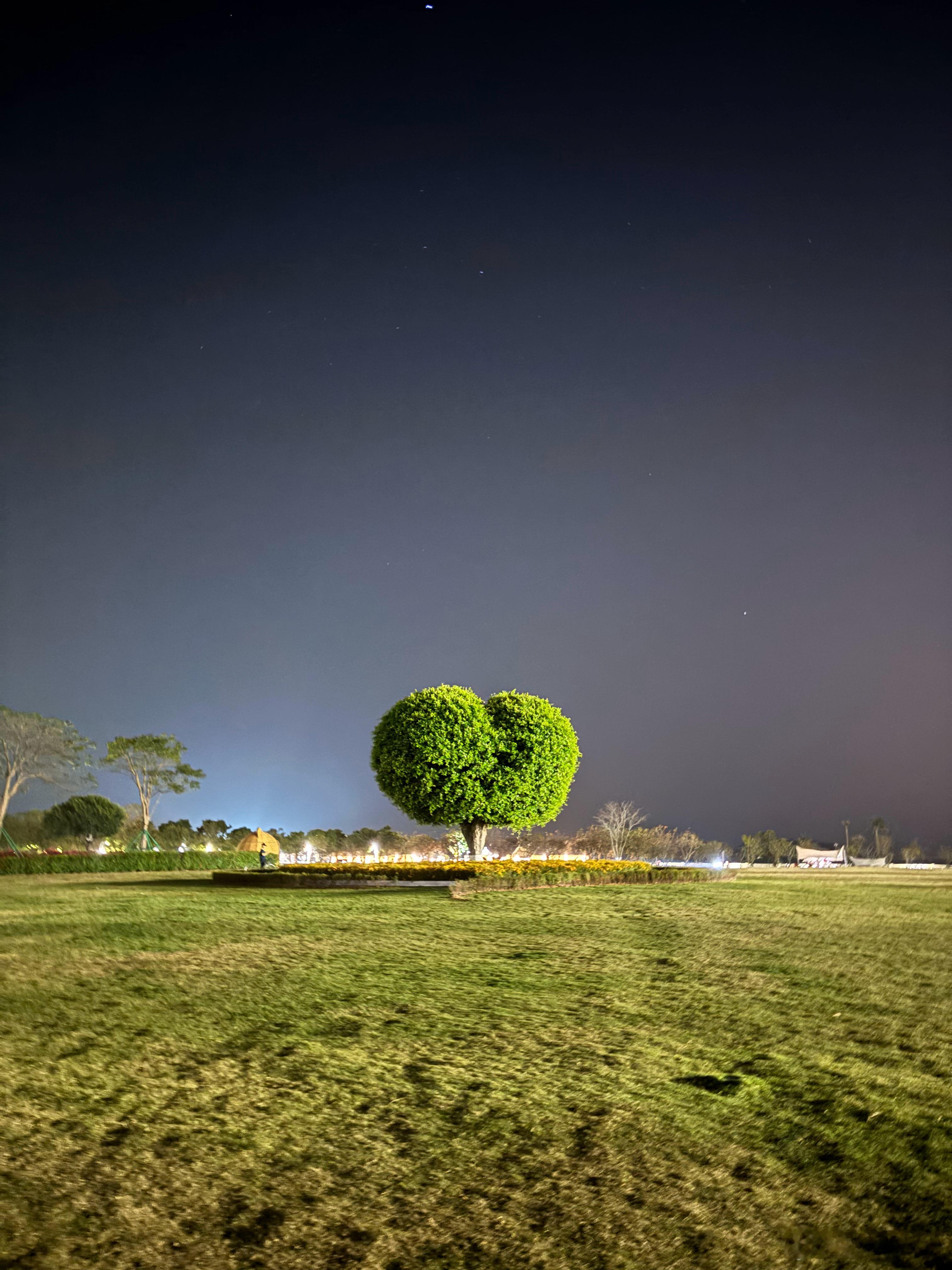 晚上散步时拍了对面公园的网红“爱心树”