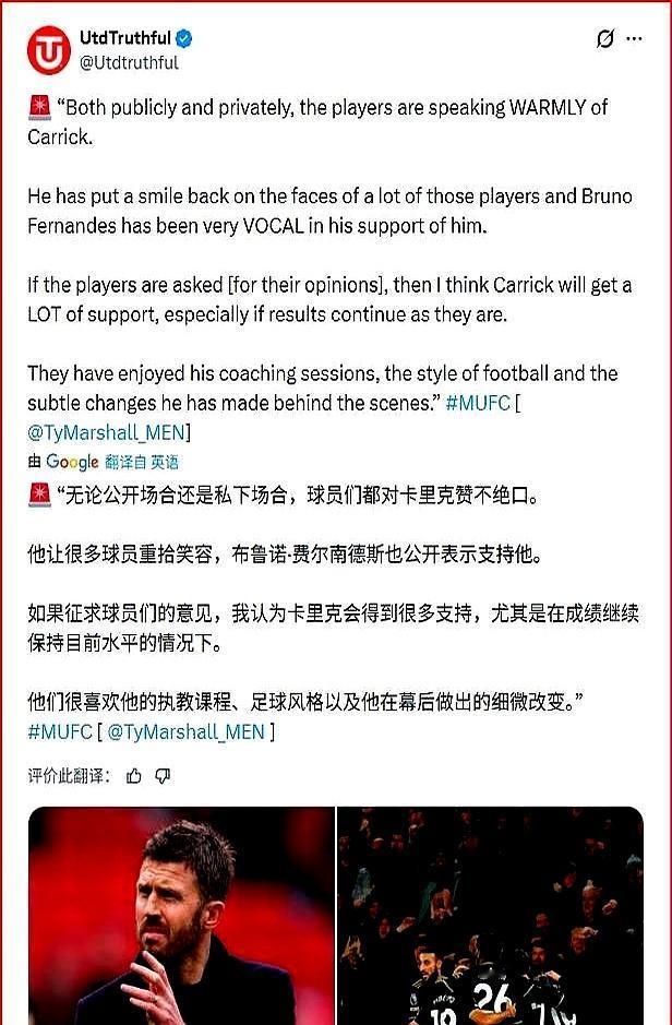 卡里克把球往场上一扔:场上你说了算,输了球,你们自己去面对镜头。 B费这种大佬都服了。以前一逆风就蔫的加纳乔和梅努,现在跟疯狗一样满场飞奔。五场不败,连曼城都给掀翻了,成了今年英超唯一不败的队。 没什么复杂的战术板,训练就是短平快。他就一句话,把责任和自由一起还给球员,让他们重新为胸前的队徽和自己的尊重去踢球。 所以说,管好这帮千万富翁,靠的究竟是战术板,还是人心?