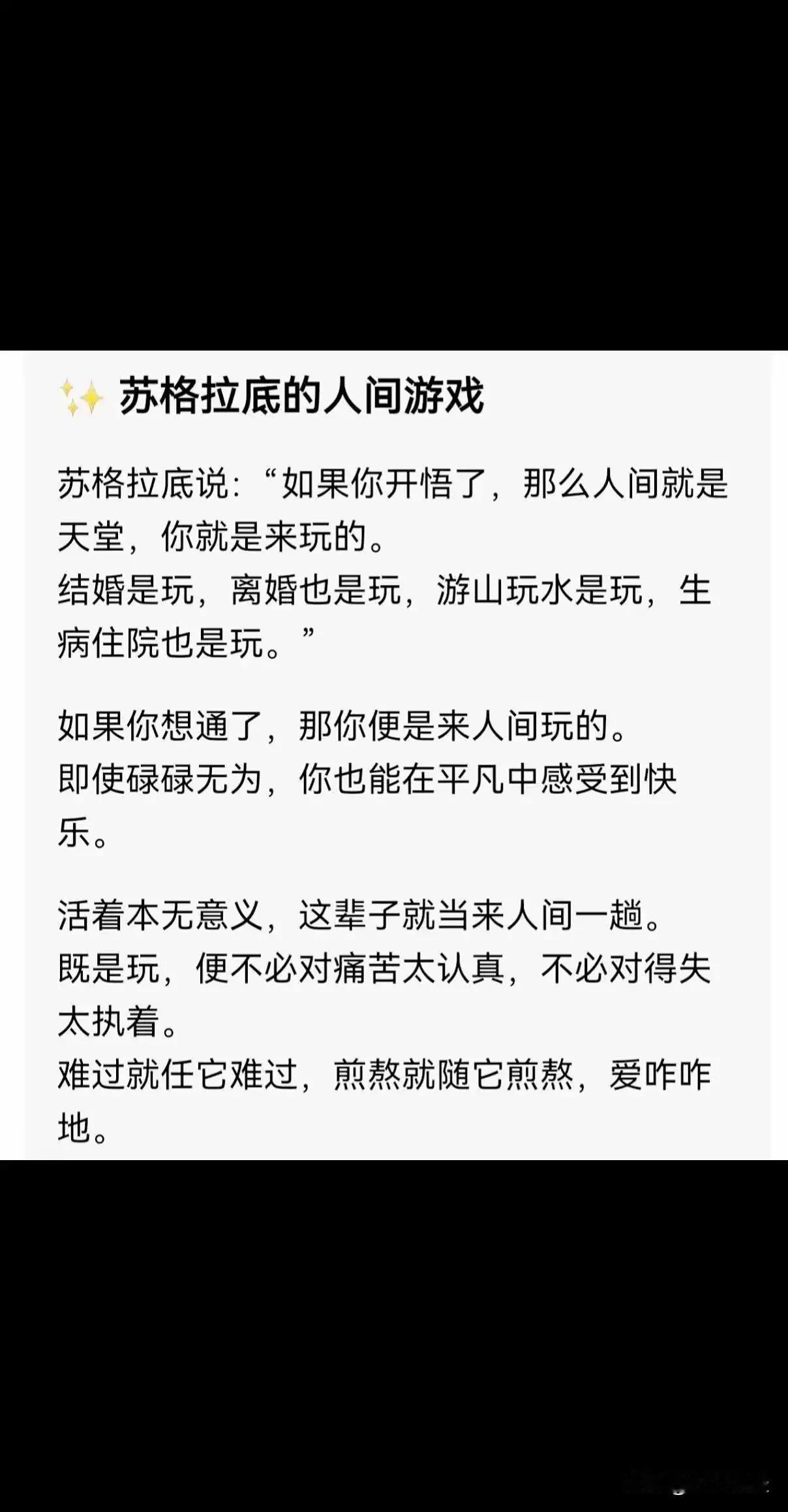 洪教头喋喋不休,总爱宣扬所谓的正义,争强好胜,最终却落得个命丧黄泉的下场。 人生最大的智慧在于开悟。莫言说,要闭上嘴,少说话;苏格拉底说,若来到这世界,本就是来体验的,无论经历煎熬还是痛苦,一旦开悟,便明白不过是来人间游玩一场。 想不开时换个角度,也就想开了,不过如此……。看书的真谛 灵魂的至高境界 生活