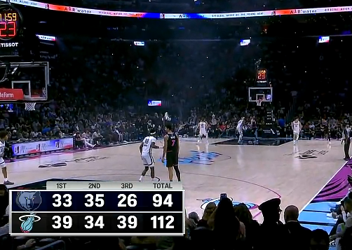 第三节比赛结束,热火112-94领先灰熊。
