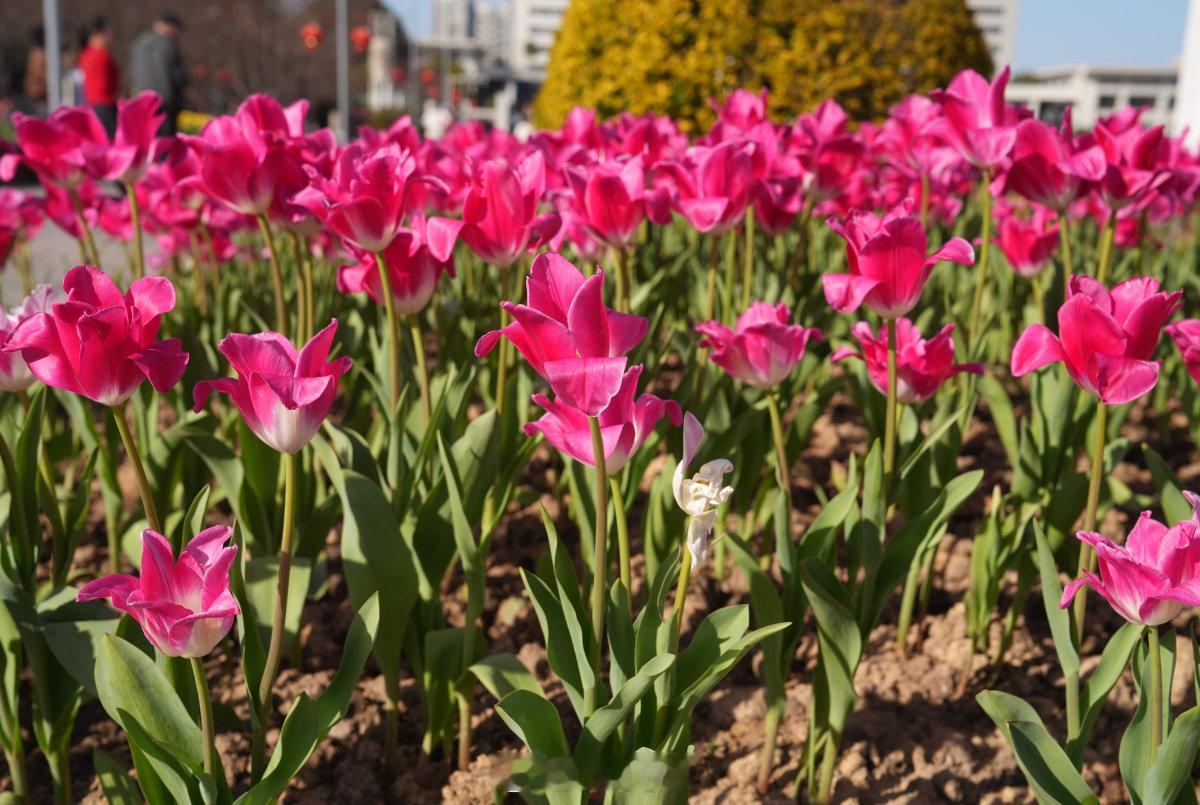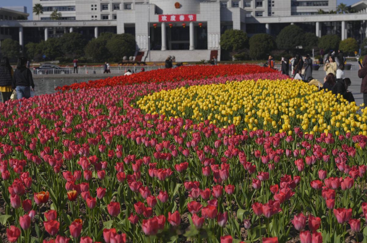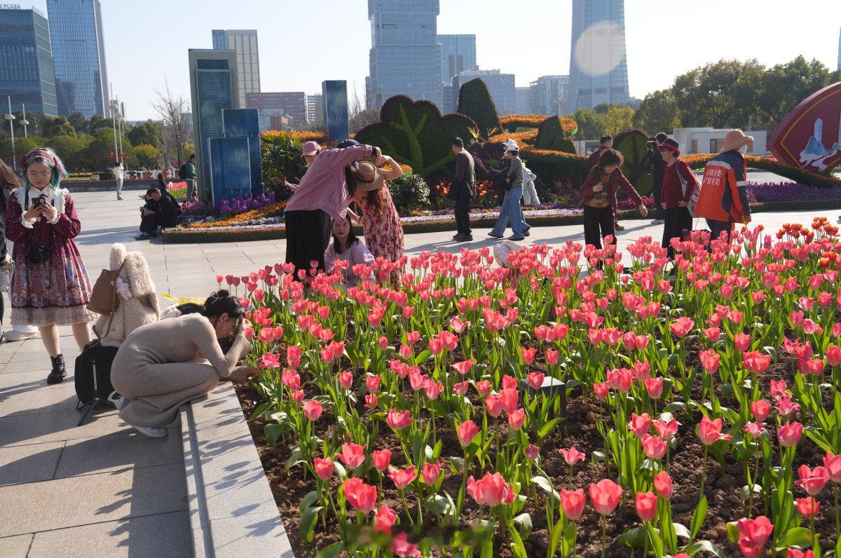 宁波这片郁金香花海成新春打卡顶流 2026年春节,宁波鄞州文化广场的2700㎡郁金香花海成网红打卡地,吸引大批市民游客前来。广场以“绿雕+郁金香”打造新春花境,绿雕用16万余株植物打造,搭配2万余株红黄系花境植物,满是马年喜庆氛围。郁金香模纹花坛有孟菲斯等7个品种、4万余株,红粉相间与高楼相映,浪漫十足。现场赏花拍照者络绎不绝,不乏外地游客、直播分享者,还有市民全家二刷拍摄全家福,这里也成了鄞州新春热门休闲地。(甬派)文明宁波幸福年2026家乡年