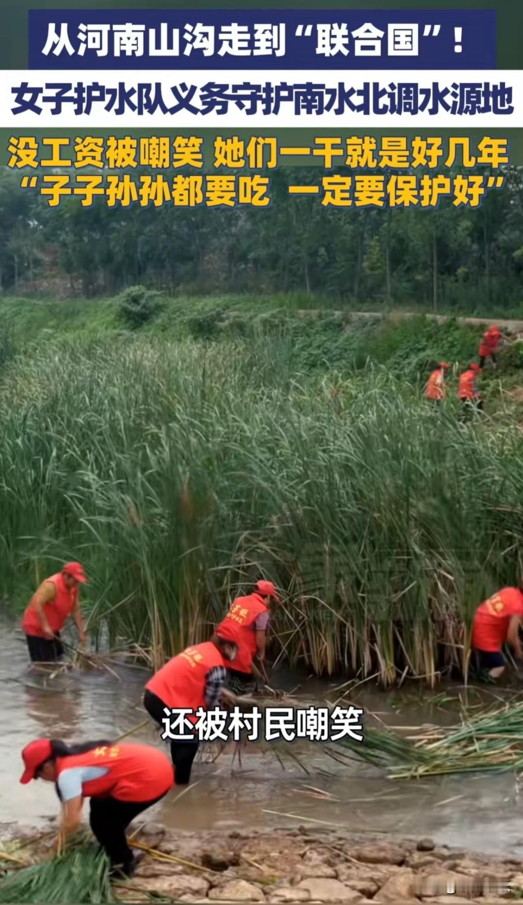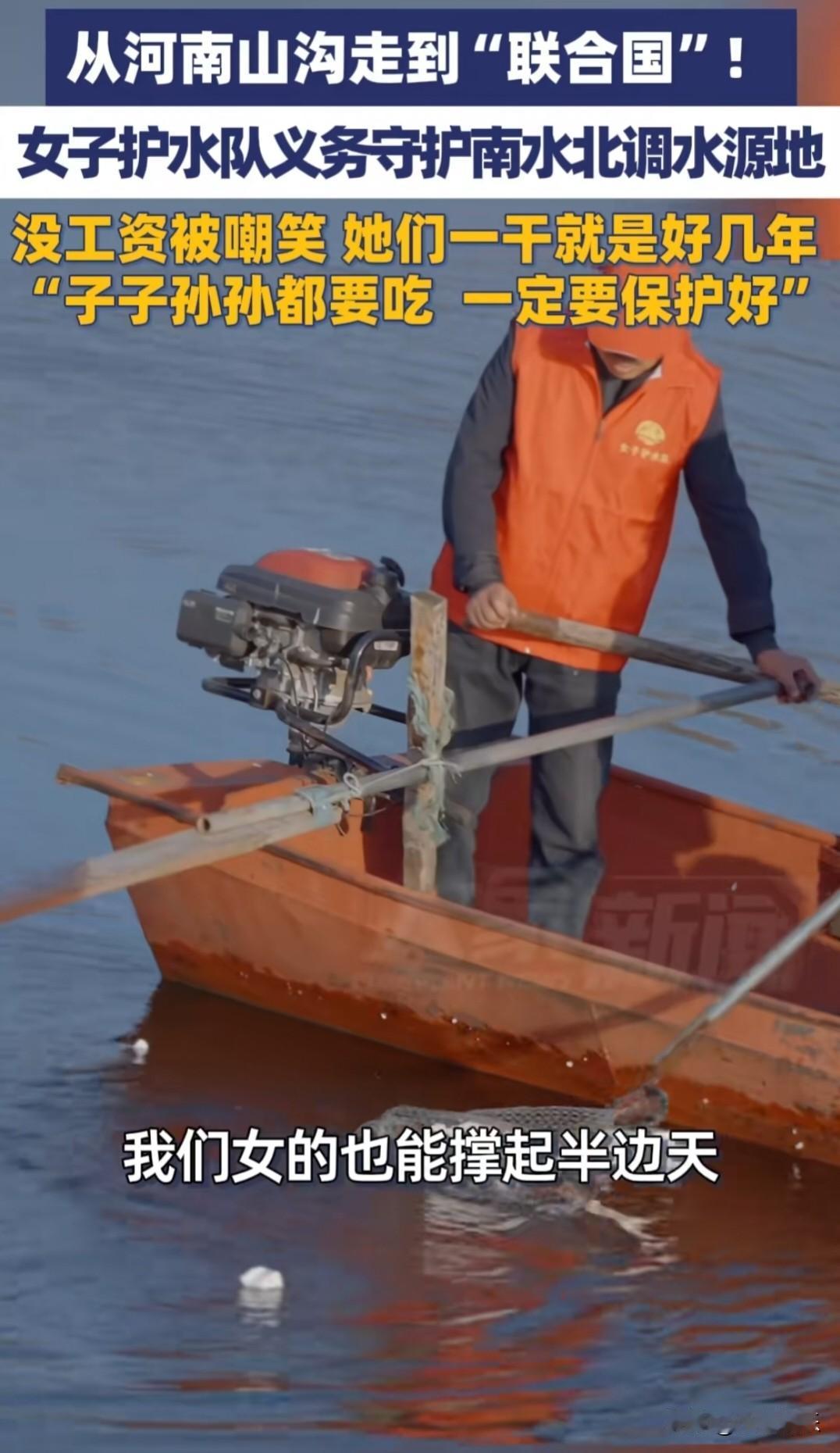 从被全村嘲笑,到站在联合国讲台:河南这群农村妇女,凭什么? 谁能想到? 一群被同村人嘲笑“瞎折腾”“没工资还干得起劲”的农村妇女,竟然从河南的大山沟里,走到了联合国的讲台上! 她们没有编制,没有工资,不图名利,只为守护一汪清水。这一干,就是好几年。 她们,就是孙小英和她的女子护水队。 南水北调工程,中线源头在河南淅川。为了保证一渠清水送北上,水源地的环境保护,容不得半点马虎。 但守护这片水域的,除了专业人员,还有一群你可能想象不到的人——孙小英和她的姐妹们。 她们是地地道道的农村妇女,平均年龄超过50岁。她们的家,就在丹江口水库边上。 几年前,孙小英发现,库区岸边偶尔会有垃圾、漂浮物。她琢磨着:“咱这水是要送到北京去的,脏了可不行。” 于是,她拉了同村的脱贫户,组建了一支“女子护水队”。没有经费,没有工资,纯属义务劳动。 有人笑她们傻:“又没钱拿,图啥呢?真是闲得慌!” 孙小英听了,也不争辩,只是笑着跟姐妹们说:“别人笑,咱把活儿干好就行。等人家喝上干净水,咱心里就踏实。” 护水的工作,看着简单,干起来才知道有多难。 丹江口水库岸线长,有的地方坡陡路滑。夏天,烈日当头,水面反光刺眼,大姐们穿着红马甲,沿着崎岖的库岸线,捡拾垃圾、打捞漂浮物。汗水顺着脸颊往下淌,衣服湿了干,干了又湿。 冬天,寒风凛冽,水面冰冷刺骨。她们拿着长竿和网兜,弯腰在岸边清理。有时为了捞起一个卡在石缝里的塑料瓶,要手脚并用,小心翼翼地爬下去。 孙小英的手上,有不少被树枝划破、被石头磨出的老茧和伤疤。她从不抱怨,反而打趣说:“这都是咱的‘功勋章’。” 有一次,为了打捞一个被冲到远处的泡沫箱,几个大姐划着小船出去。箱子很重,拖到一半,船身摇晃得厉害,差点翻掉。岸上的人看得心都悬起来了,她们却只是稳住身子,一点一点把箱子拽了回来。 事后有人问:“那么危险,一个箱子,至于吗?” 孙小英说:“咋不至于?这东西在水里烂了,污染多大啊。咱累点、险点,也得弄干净。” 就这样,日复一日,年复一年。 别人在村头聊天打牌的时候,她们在水边忙碌。 别人过节团圆的时候,她们可能还在岸上巡视。 慢慢地,风凉话少了,敬佩的人多了。偶尔有村民路过,会主动停下帮忙搭把手。也有年轻人被她们带动,加入了护水的队伍。 但谁也没想到,这群朴素的农村妇女,有一天会走出大山,走向世界。 因为她们多年如一日的坚守,孙小英作为代表,受邀前往联合国,分享她们守护水源的故事。 站在联合国的讲台上,面对来自世界各地的目光,孙小英讲起了丹江口水库,讲起了她们的护水队,讲起了那些被汗水浸透的日日夜夜。 她没有华丽的辞藻,只有最朴实的语言。但台下的掌声,经久不息。 曾经那个被人嘲笑的“傻大姐”,这一刻,让世界看到了中国普通百姓的责任与担当。 从河南山沟,到联合国讲台,孙小英和她的护水队走了好几年。 这几步路,丈量的,不仅是从乡村到世界的距离,更是一群普通农村妇女心中那份朴素而伟大的坚守。 她们守住的,是一泓清水的纯净; 她们传递出的,却是中国人骨子里的那份担当。 这世上最动人的荣耀,不是聚光灯下的光环,而是无人看见处,那份日复一日的默默付出。 当个人的命运与宏大的国家工程相连,平凡的人生,便有了不平凡的意义。 她们,是我们身边真正的“光荣榜”。 为孙小英和她的姐妹们点赞! 为所有默默守护家园的普通人点赞!