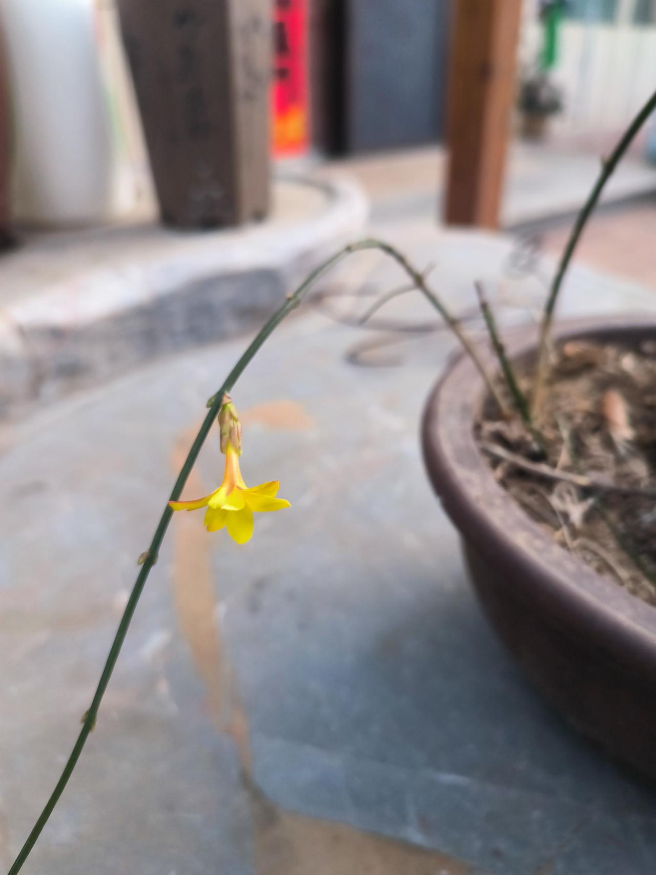 去年可不是这样,去年开了上百多,密密匝匝。儿子居然用手机拍摄下来开放的过程,前前后后持续了一两周。 今年干脆不开了,或许是在生气,一年来对它照顾太少了,待遇太低了。 这棵迎春到我们家有五六年的时间。这棵花原来是在学校,我的办公室里,调走的时候我搬回家。当年养的就不太好,于老师到了我的办公室看了看,再放在室内就养坏了。 她帮着拿回家,让老兄帮你养老兄是养花的好手,三四个月之后,果然长得很旺盛。 这才是真正的迎春花,茎是绿色的,细弱。我们平时看到的绿化树木,所谓的迎春并不叫迎春,而是连翘,茎粗壮,花朵大一些,连翘一般在清明节前后开放。莲花清瘟胶囊,莲花口服液就是用连翘的果实提炼的。 迎春年年开,抢的春风第一枝。迎春花开了,春天就到了,浑身有劲。