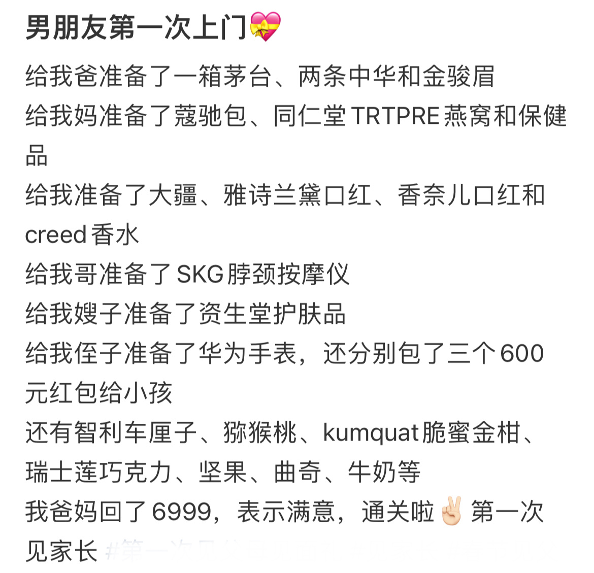 男朋友第一次上门带的东西