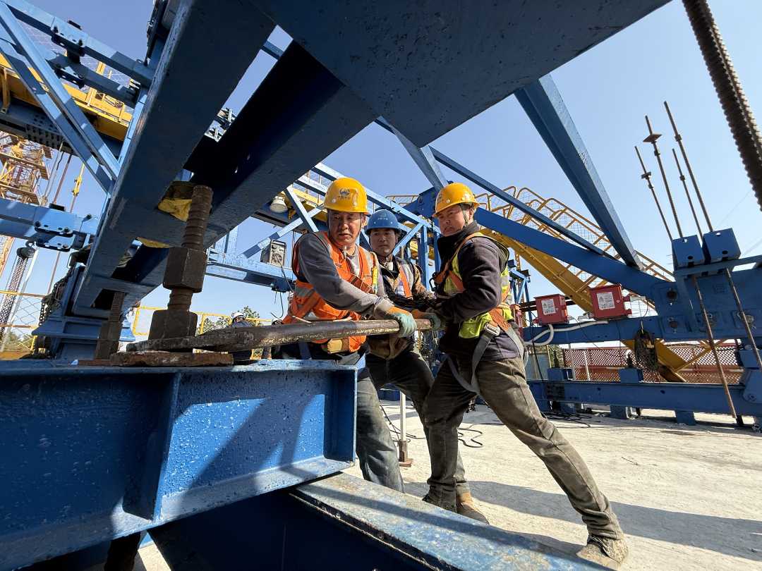 “从8号块的混凝土浇筑、张拉压浆,再到今天的挂篮走行,大家一直铆足劲在干。”项目经理王景寿介绍,“今天通过一天紧张有序的施工,我们顺利拆除了防护棚架的前端封闭,并安全圆满地完成了挂篮走行,接下来还要进行9号块的钢筋绑扎和混凝土浇筑,我们将对每一个节点进行精准把控,为节后全面复工赢得主动。”