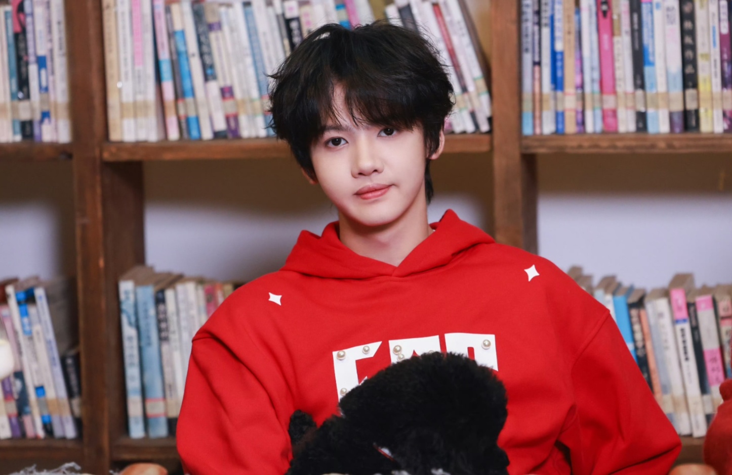 张奕然花絮照张奕然《马年串烧》花絮照红色卫衣发箍造型好萌啊张奕然红色卫衣look