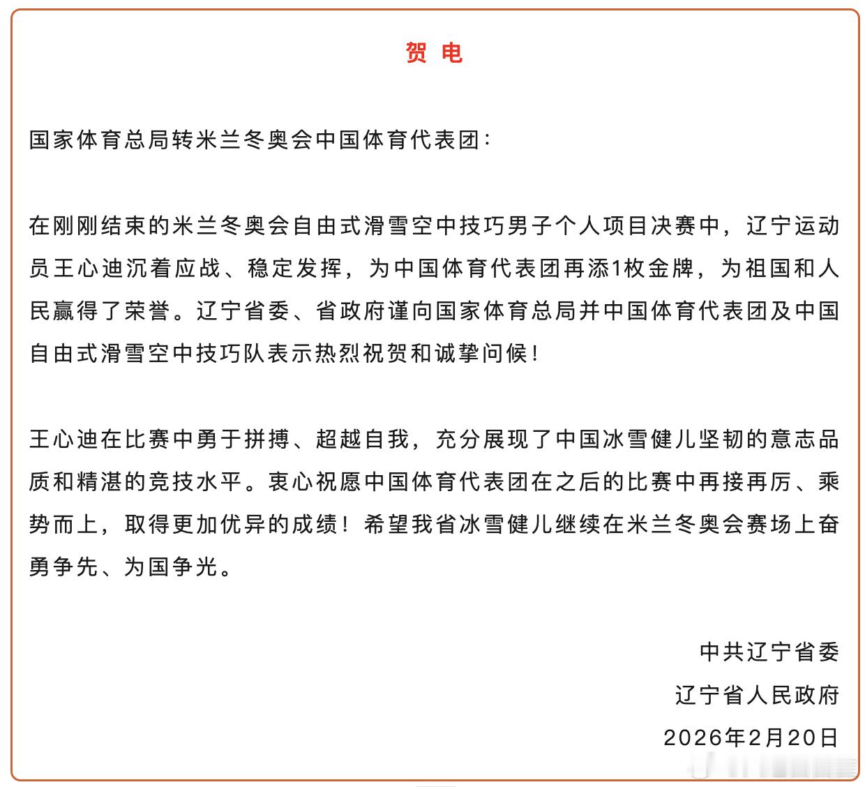 北京市委市政府贺电谷爱凌金牌 恭贺北京!恭贺金牌!🏅辽宁有对金牌夫妇!中国足协