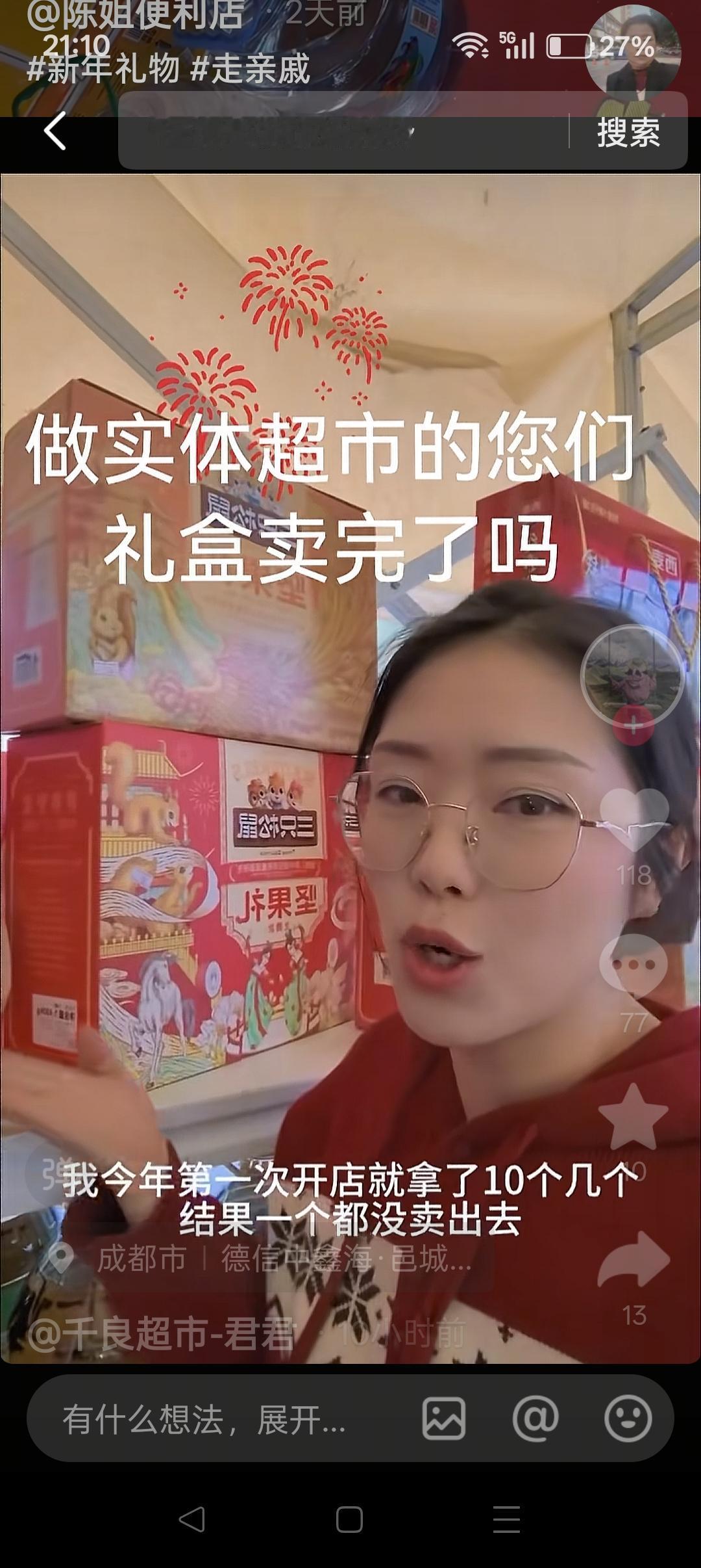 为什么今年春节礼盒卖不动? 以前一到过年,超市里全是包装漂亮的礼盒,大家走亲访友也都爱提几箱,显得有面子、有人情。可这两年明显不一样了,礼盒堆在那里没人买,卖不动成了常态。 原因很简单: 第一,大家越来越不想为包装花钱了。很多礼盒看着大、看着贵,打开一看东西没多少,盒子占了一半成本。以前还愿意为面子买单,现在都觉得不划算,不如买点实在的。 第二,送礼越来越讲实用。现在人送礼,主要看能不能用得上。牛奶、鸡蛋、水果、粮油,这些比花里胡哨的礼盒更受欢迎。送得实在,对方收得也舒服。 第三,消费更理性了。经济前景不乐观,钱不好挣,大家都学会精打细算,不敢乱花钱、能省就省,不再盲目跟风买贵的。与其买个中看不中用的礼盒,不如直接送点实用的。你看连出行都更省了,今年不少人特意选更便宜的绿皮车回家过年——为的就是把通勤成本降到最低。 第四,走亲访友的频率低了。以前过年走亲访友是必须的。现在亲戚朋友之间,就算在春节期间来往都减少了,人情愈发淡薄。 春节,也许将来不再是全民节日,而是一年中一次全民长假,这是社会变迁中的必然。现在物资生活越来越富足,平时的吃穿用比以前过年都好得多,于是对过年的期待降低了,仪式感减弱了,年味自然就淡了。 如今社会里,不少人更愿意把情感寄托在宠物身上,懒得维系复杂的人情世故。在这样的环境下,对春节的人情往来,又还能有多少期待呢?
