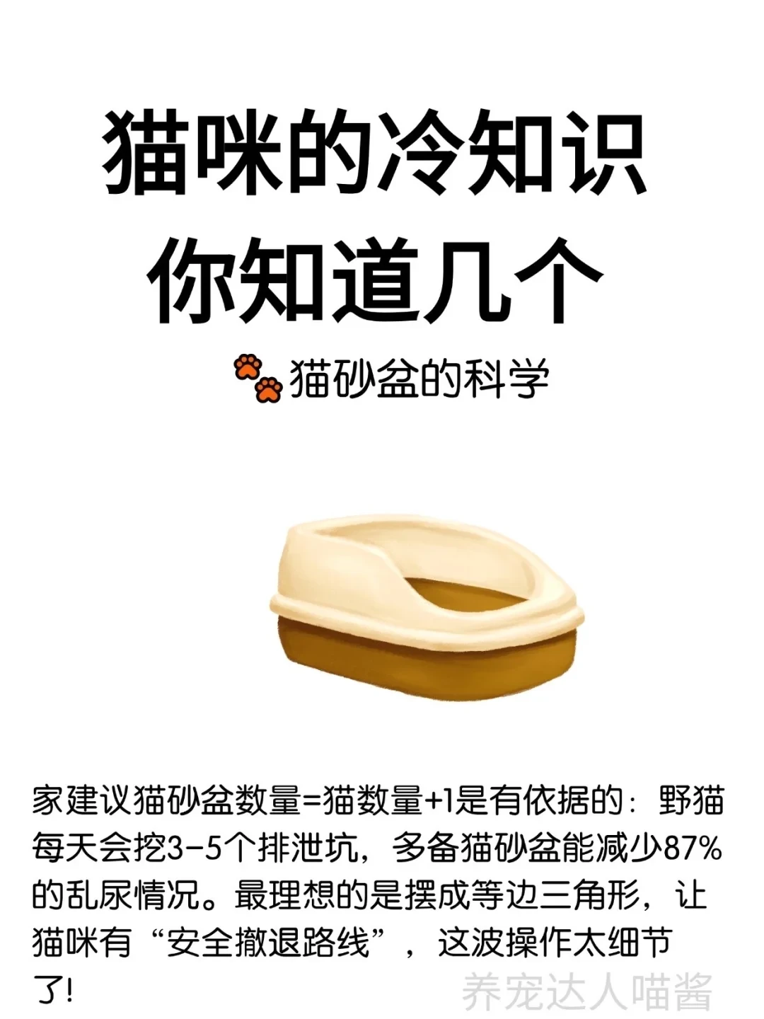 猫咪的世界藏着不少冷知识。它们舌头上的倒刺是角蛋白构成的 “干饭神器”,喝水速度是狗狗的 4 倍,还能把猎物骨头上的肉刮得干干净净。三花公猫堪称 “万中无一的稀有款”,出现概率仅 1/3000,且大多因染色体异常缺乏生育能力。踩奶行为是猫咪在 “找妈妈”,成年后则成了减压方式,踩奶时大脑释放的内啡肽能带来吃巧克力般的快乐。埋屎不是讲卫生,野外猫咪埋屎是在 “认怂”,而地位高的猫会故意暴露粪便宣示主权。它们的尾巴是情绪晴雨表,竖起抖动是兴奋,左右横扫是烦躁。猫咪夜视能力虽强却是近视眼,静止时仅能看清 6 米内物体,还无法识别红色。4 - 6 个月大的猫咪掉乳牙时会把牙齿吞下肚,90% 的铲屎官都没见过。猫砂盆数量建议按猫数量 + 1 准备,摆成等边三角形能让猫咪有 “安全撤退路线”,减少 87% 的乱尿情况。这些冷知识,是不是让你对自家猫又多了几分好奇?