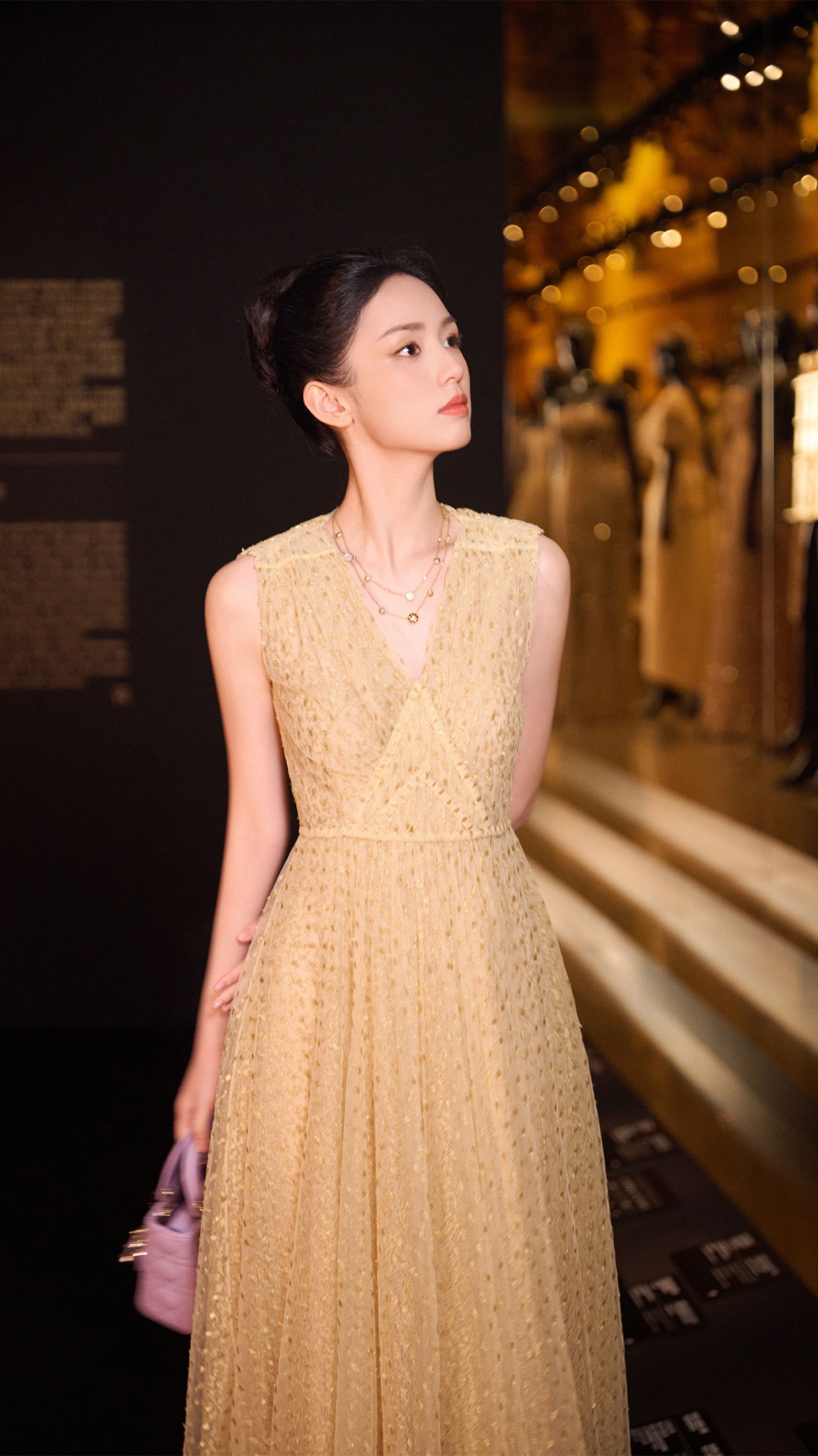 姜佩瑶,一身白色抹胸裙穿搭,好精致柔美的女明星。姜佩瑶