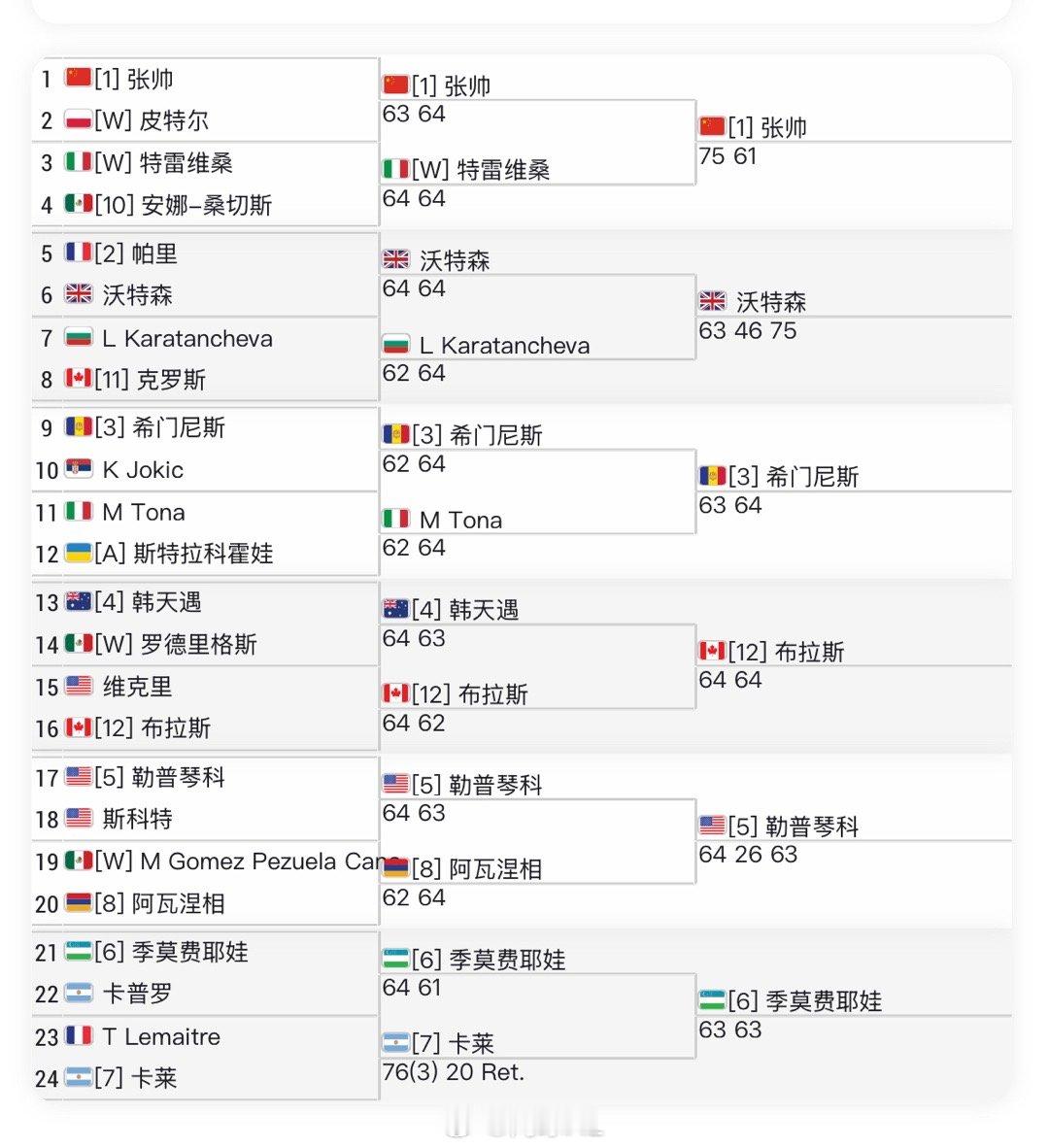 🇨🇳张帅7-5/6-1战胜特雷维桑晋级梅里达500正赛收获 25积分,12700美元奖金即时排名No.80