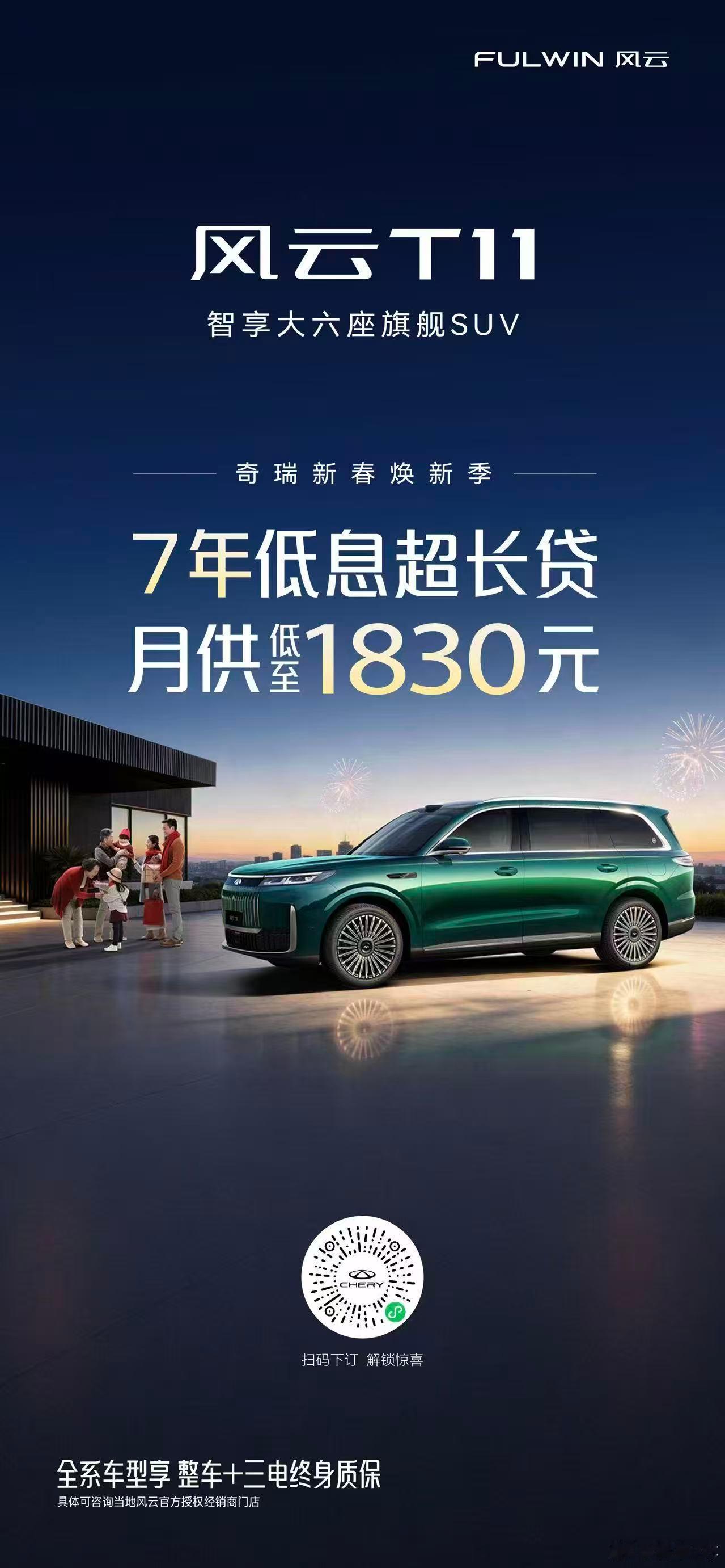 奇瑞新春焕新季闭眼冲旗舰,0压开新车5年10万3年免息,月供低至1667元奇瑞汽车
