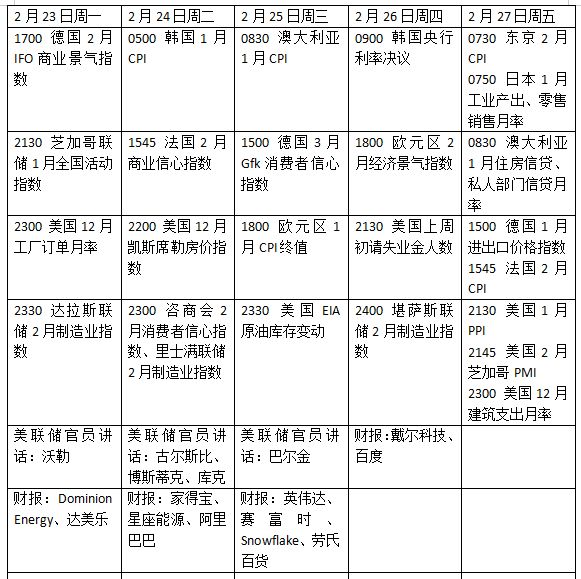 其他值得关注的数据包括:23日意大利的1月CPI通胀数据、25日欧元区1月调和CPI终值、26日欧元区货币供应量M3。27日将公布法国、西班牙、德国2月通胀初值。德国和法国将于25日和27日发布去年第四季度GDP详细数据。