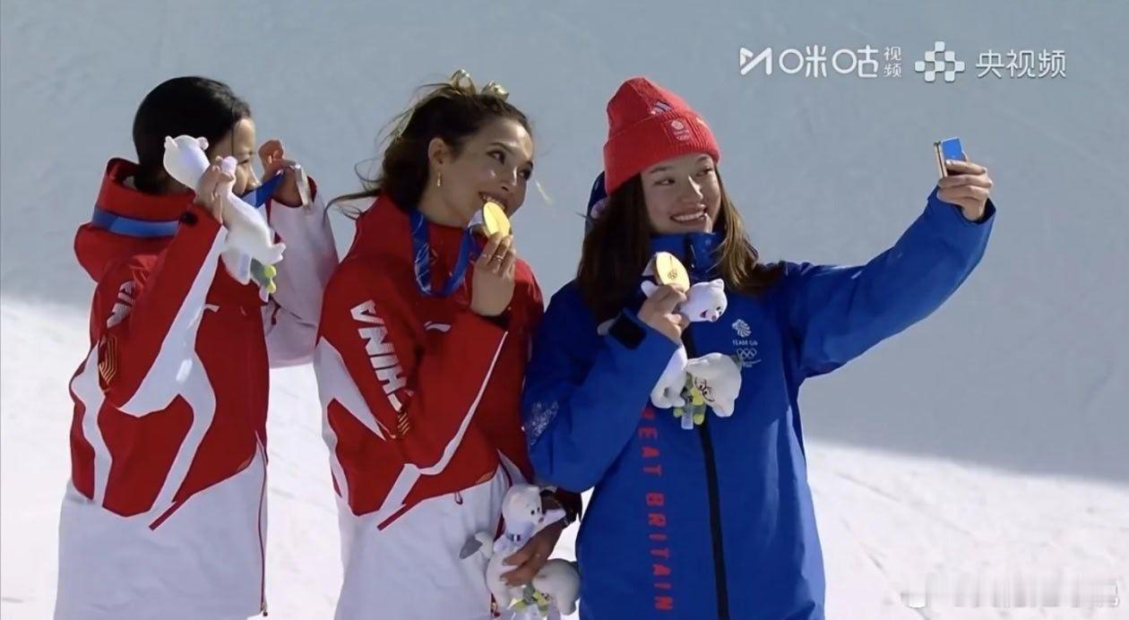谷爱凌李方慧领奖台自拍 恭喜谷爱凌和李方慧,你们太棒了